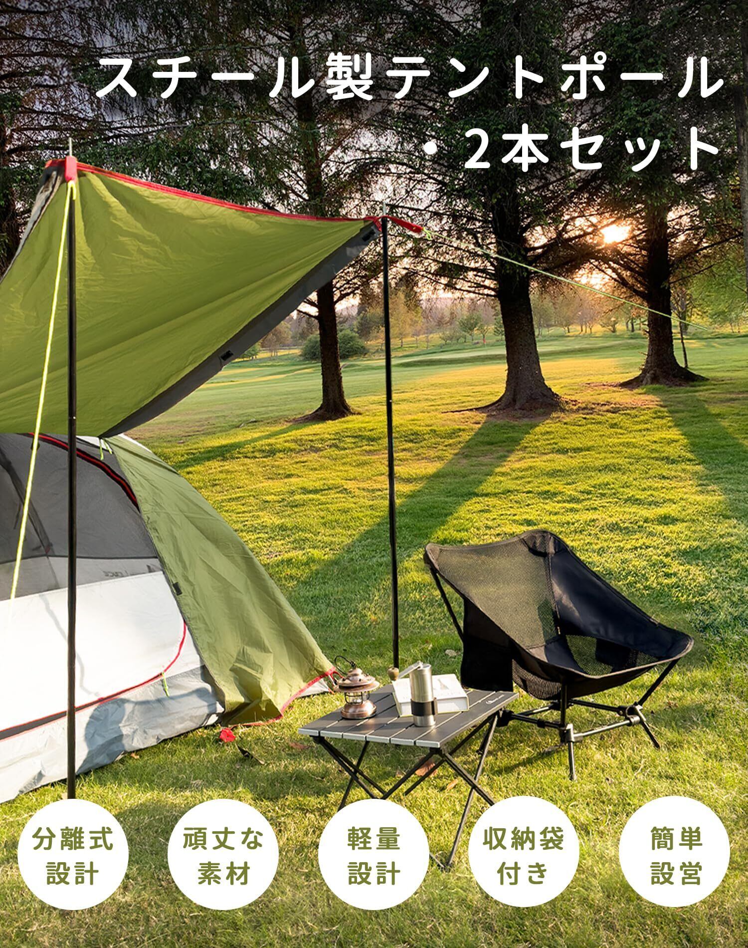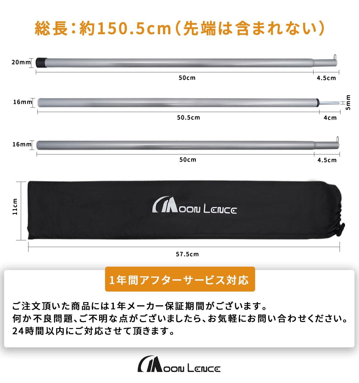 MOON LENCE テントポール タープポール スチール 2本セット 3節連結 直径16mm 最長150cm 分割式 軽量 コンパクト 持ち運び便利 収納袋付き TPOLES001