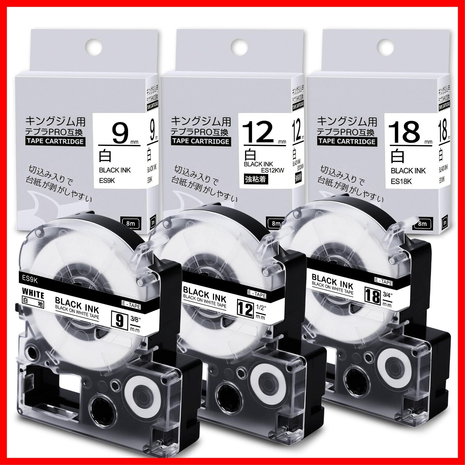 互換 キングジム テプラ テープ 9mm 12mm 18mm 白 汎用キングジム テプラPRO SS9K SS12K SS18K テプラPRO テープカートリッジ てぷらーテープ セット てぷらーテープ 互換KingJim Tepra ラベルライター 長さ 8m
