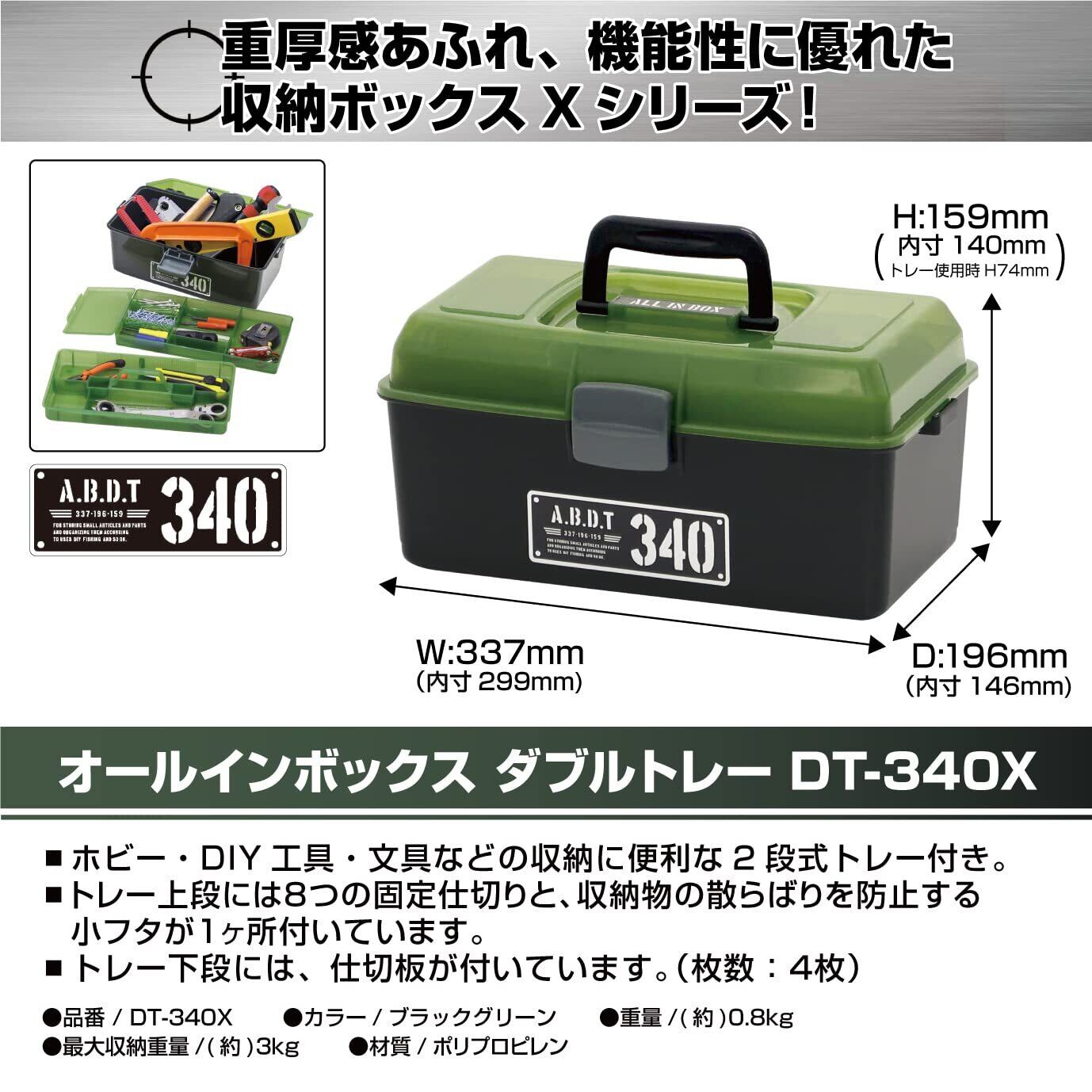 JEJアステージ 工具箱 日本製 収納ボックス [Xシリーズ オールインボックス ダブルトレー 340X] 幅33.7×奥行19.6×高さ15.9cm