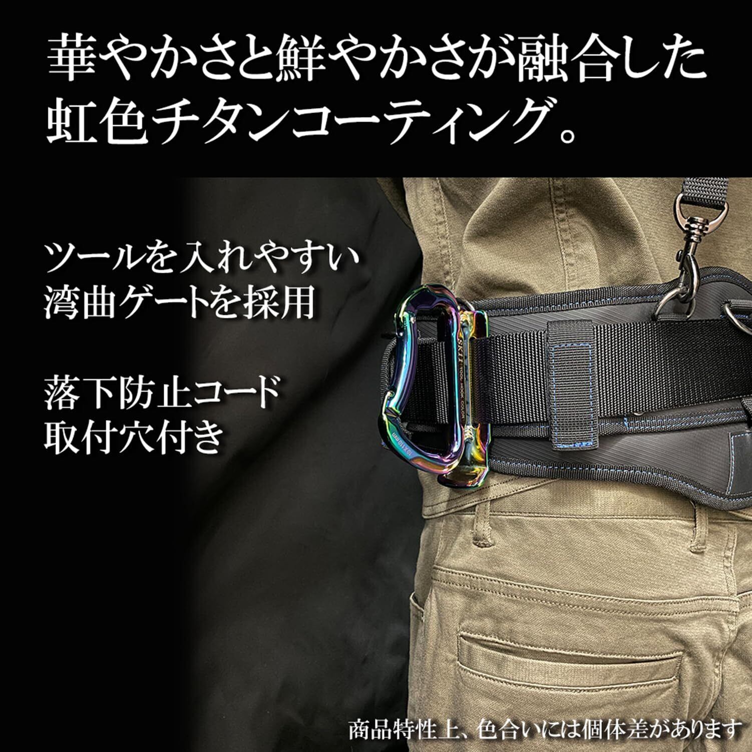 特徴1:神秘的な輝きを放つ虹色チタンコーティングが施されたツールフック※商品の特性上、色合いにバラつきがございますので、ご了承ください。