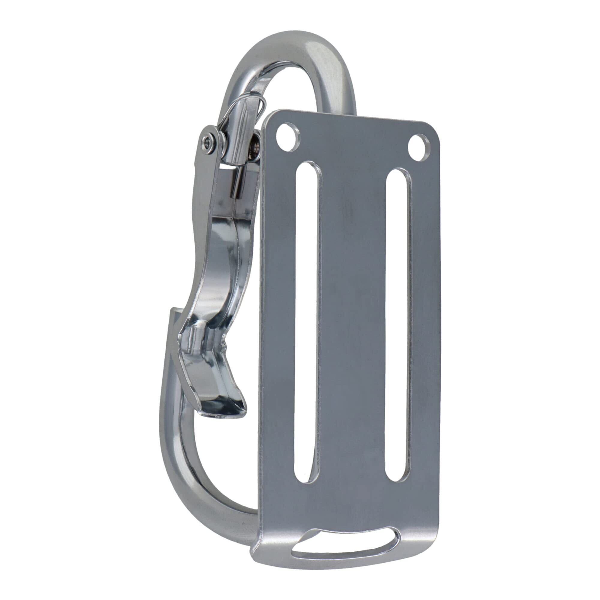 カラビナの顎部分に突起があるので、上からカツンと工具を入れると簡単に掛けることができる。
