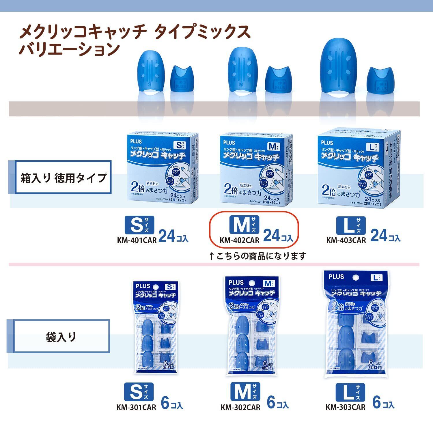 プラス 紙めくり 指サック メクリッコキャッチM タイプミックス (リング型 キャップ型) 各12個 計24個 ネイビーブルー KM-402CAR 35821