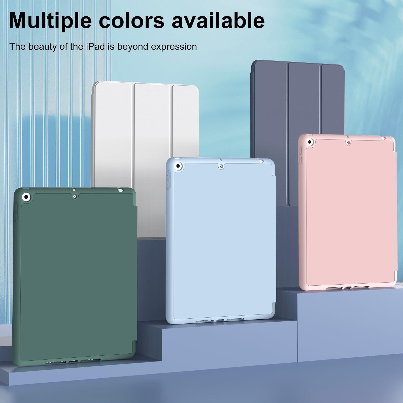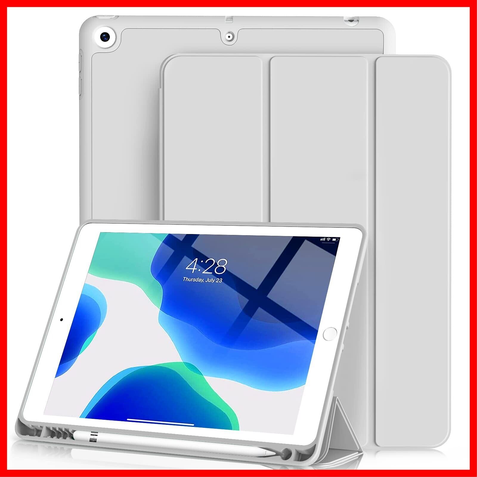 Aoub iPad 10.2 インチ 第9/8/7世代 (2021/2020/2019年) ケース オートスリープ/ウェイク機能対応 Apple Pencilペン収納・ホルダー付 スマートカバー ソフト TPU 薄型 軽量 耐衝撃 三つ折りスタンド グレー