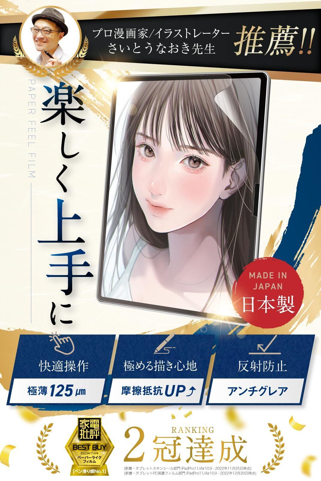 匠彩【プロ漫画家推薦】 iPad Pro 11 インチ 用 2024年モデル ペーパーライクフィルム フィルム 上質紙タイプ