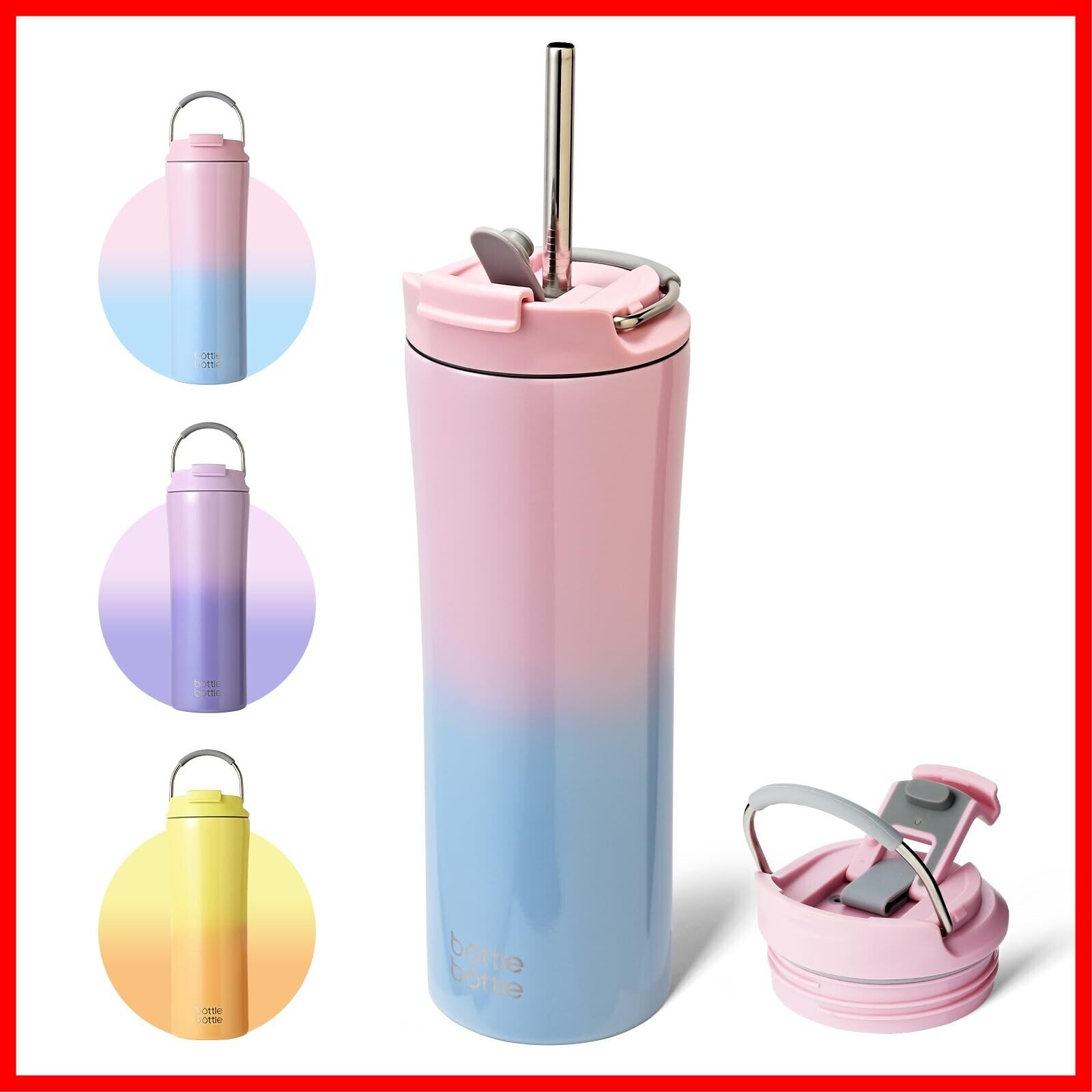 タンブラー 600ml水筒 真空 断熱 保温 保冷 ステンレス 穴あるフタ付き ストロー ボトル 濡れない 結露しない 持ち手付き 直飲み ピンク ブルー BOTTLE BOTTLE | hananoki