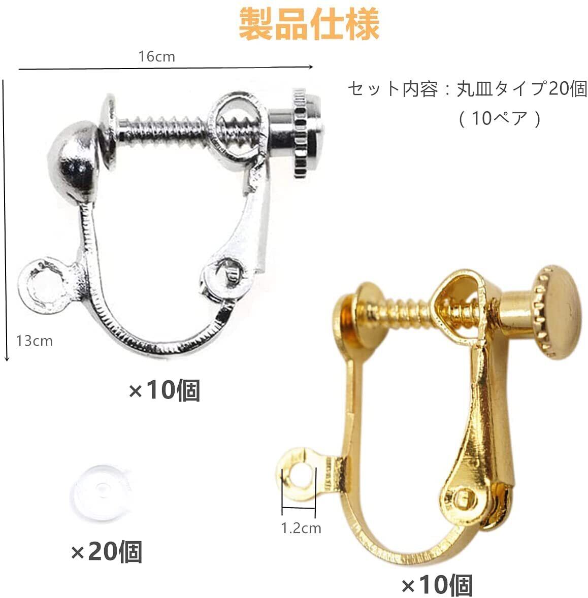 【セット内容】丸皿タイプ20個(ゴールド5ペア+シルバー5ペア)、アレルギー 対応可能なシリコンカバー付き20個付きます。