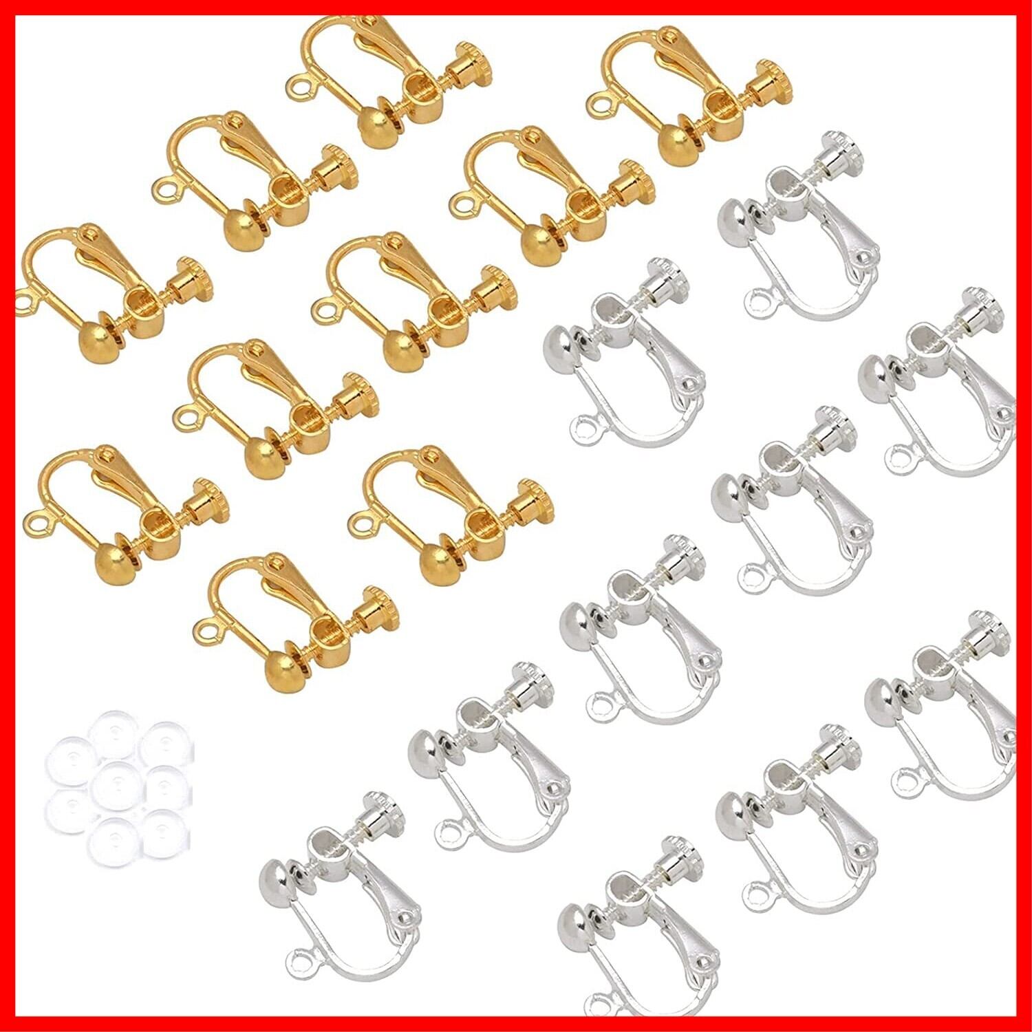イヤリングパーツ 20個入 丸玉タイプジュエリー イヤリング金具 ネジバネ式 ピアスパーツ DIY ハンドメイド 2色ゴールド+シルバーシリコンカバー付きアレルギー 対応可能