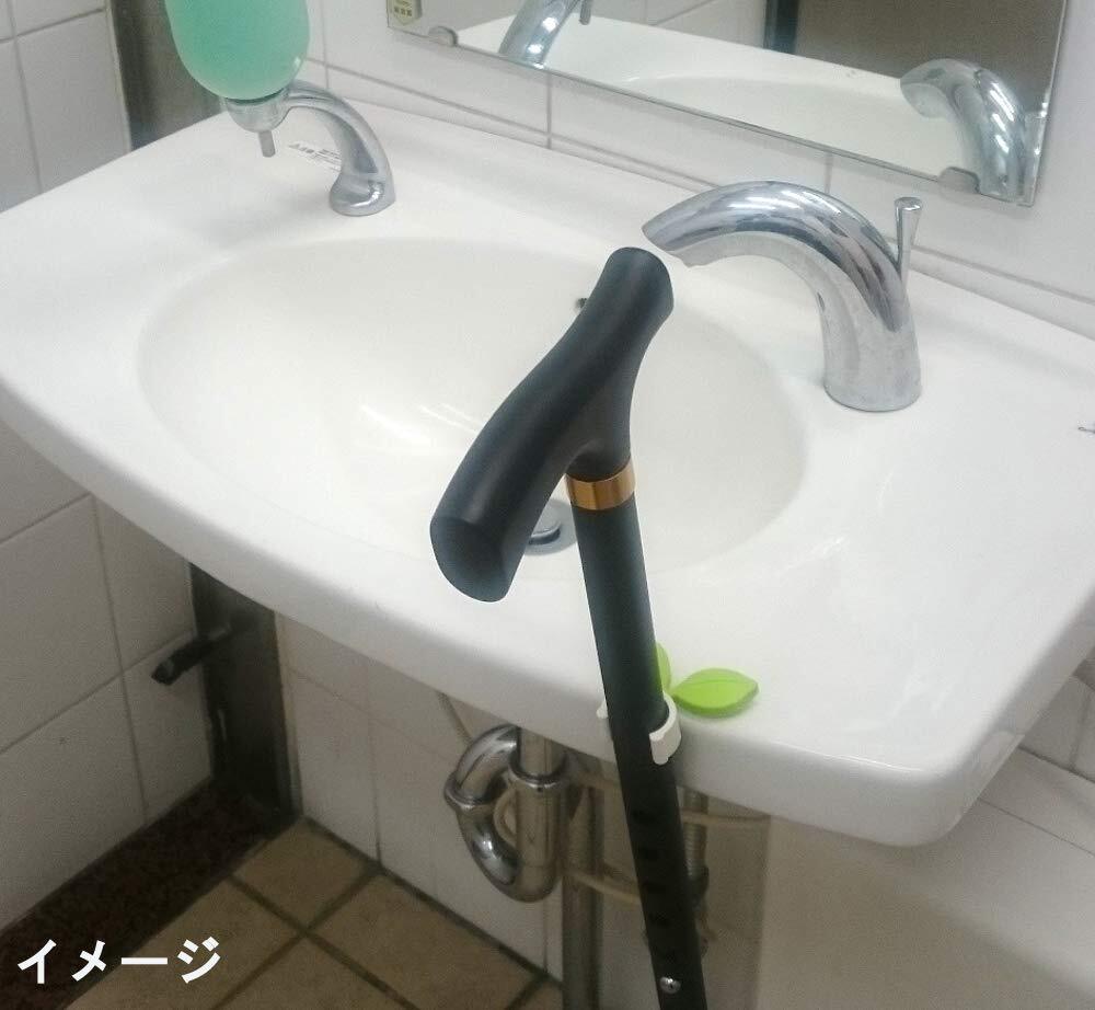 葉の部分をテーブル等に掛けるだけで杖の転倒防止に。