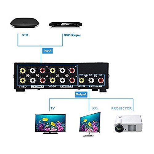 CERRXIAN 4ポート4入力1出力ビデオオーディオAVスイッチセレクタスプリッタボックス