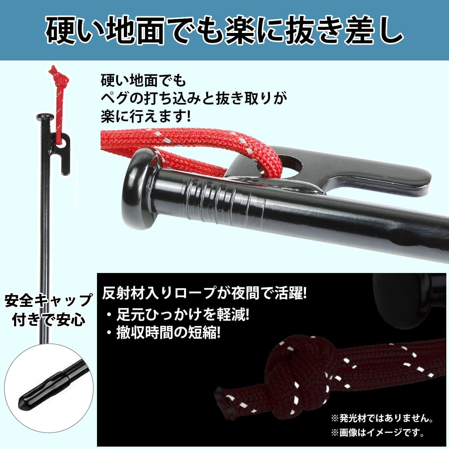 RiveRock(リバロック) 30cm ペグ 収納 バック テント タープ スチールペグ 反射ロープ 安全キャップ付き