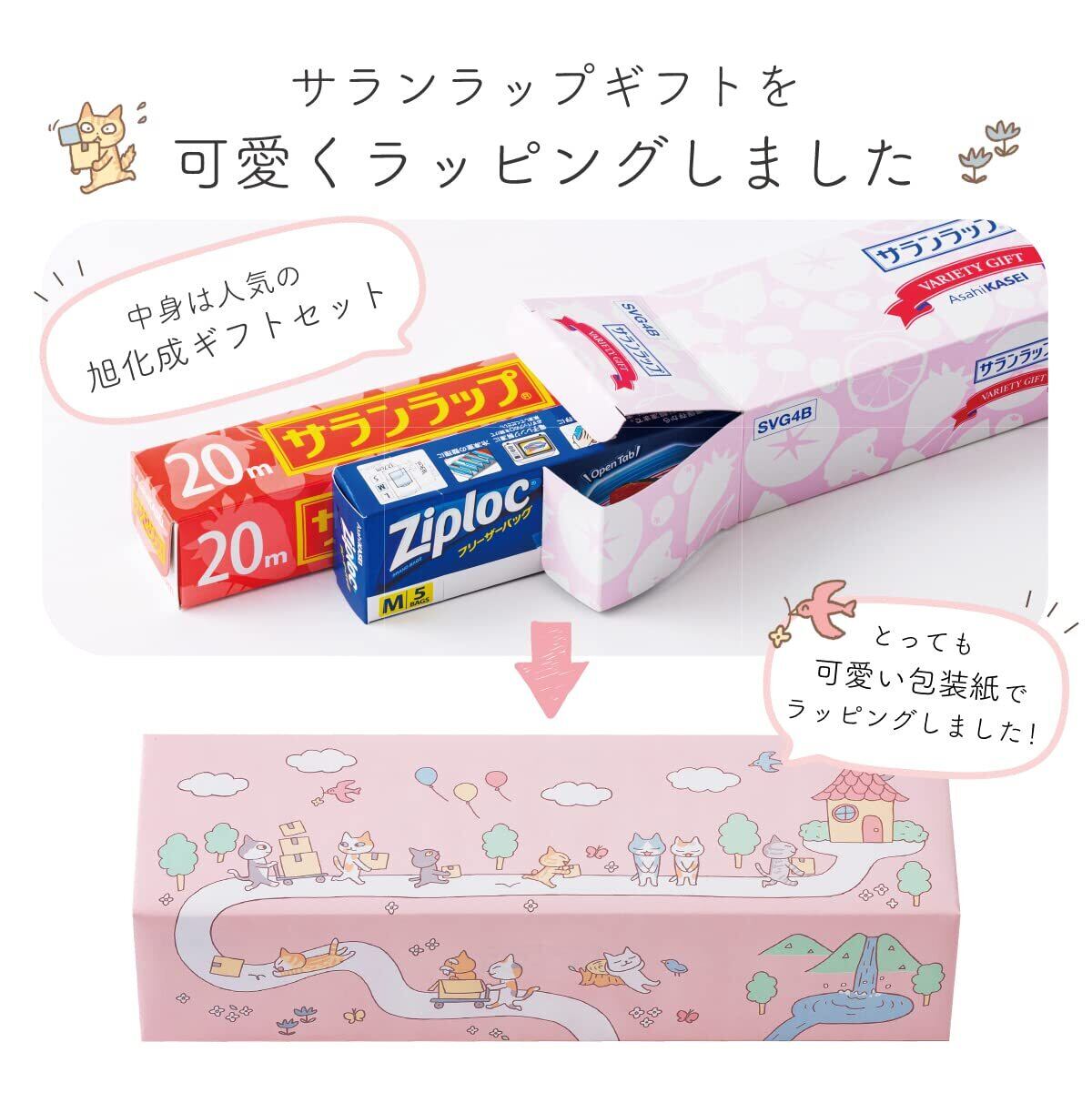 サランラップとジップロックのギフトセットを可愛い包装紙で包みました。