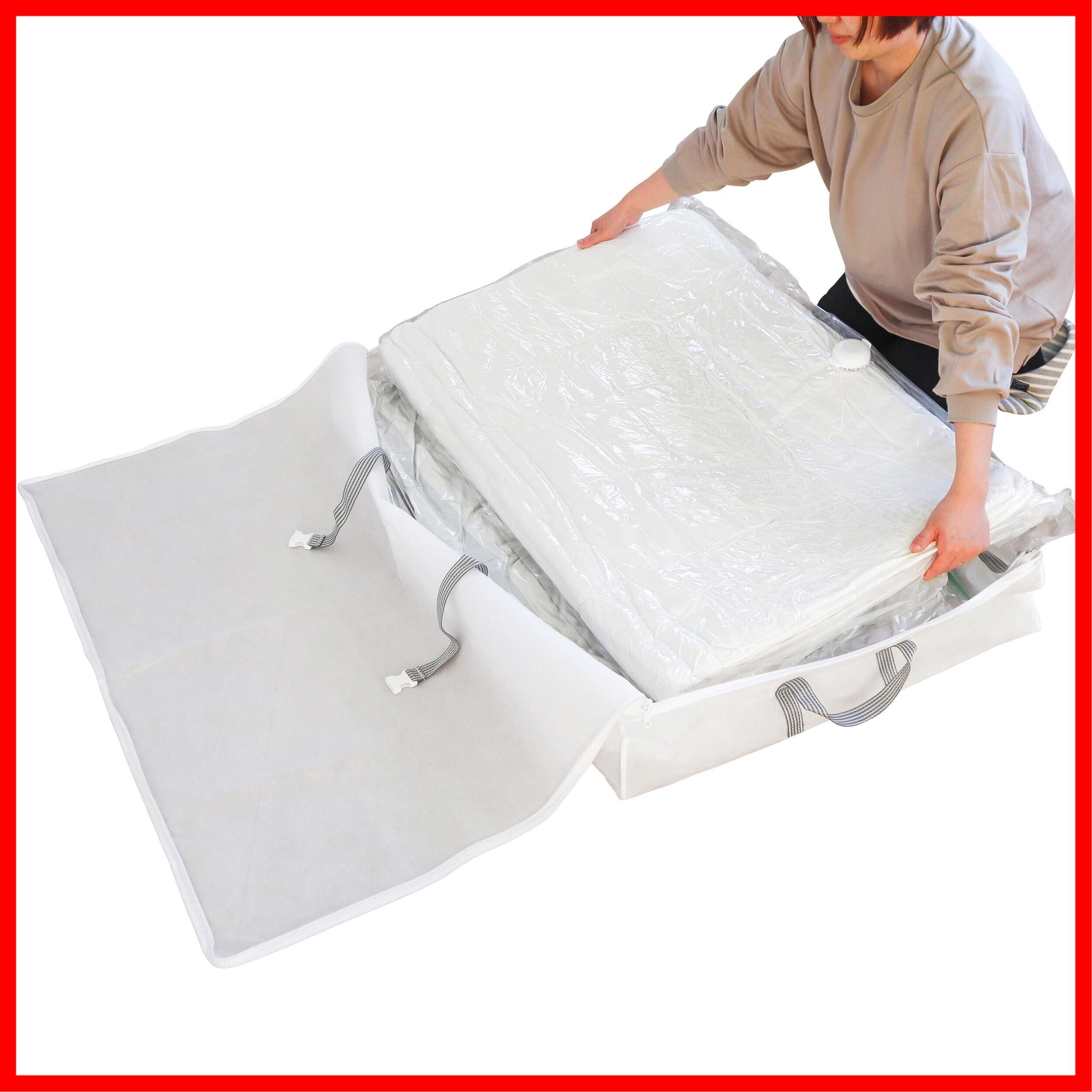 東和産業 布団圧縮袋用 収納袋 Kufu 圧縮袋用収納袋 105×70×18cm ホワイト 敷布団収納袋 圧縮袋まとめる収納袋 滑り落ち解消 不織布 持ち手付 運びやすい