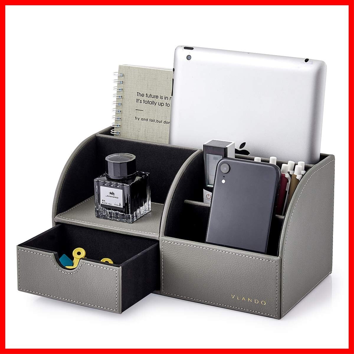 Vlando デスクオーガナイザー 卓上収納 ペン立て リモコンラック 小物入れ (グレー)