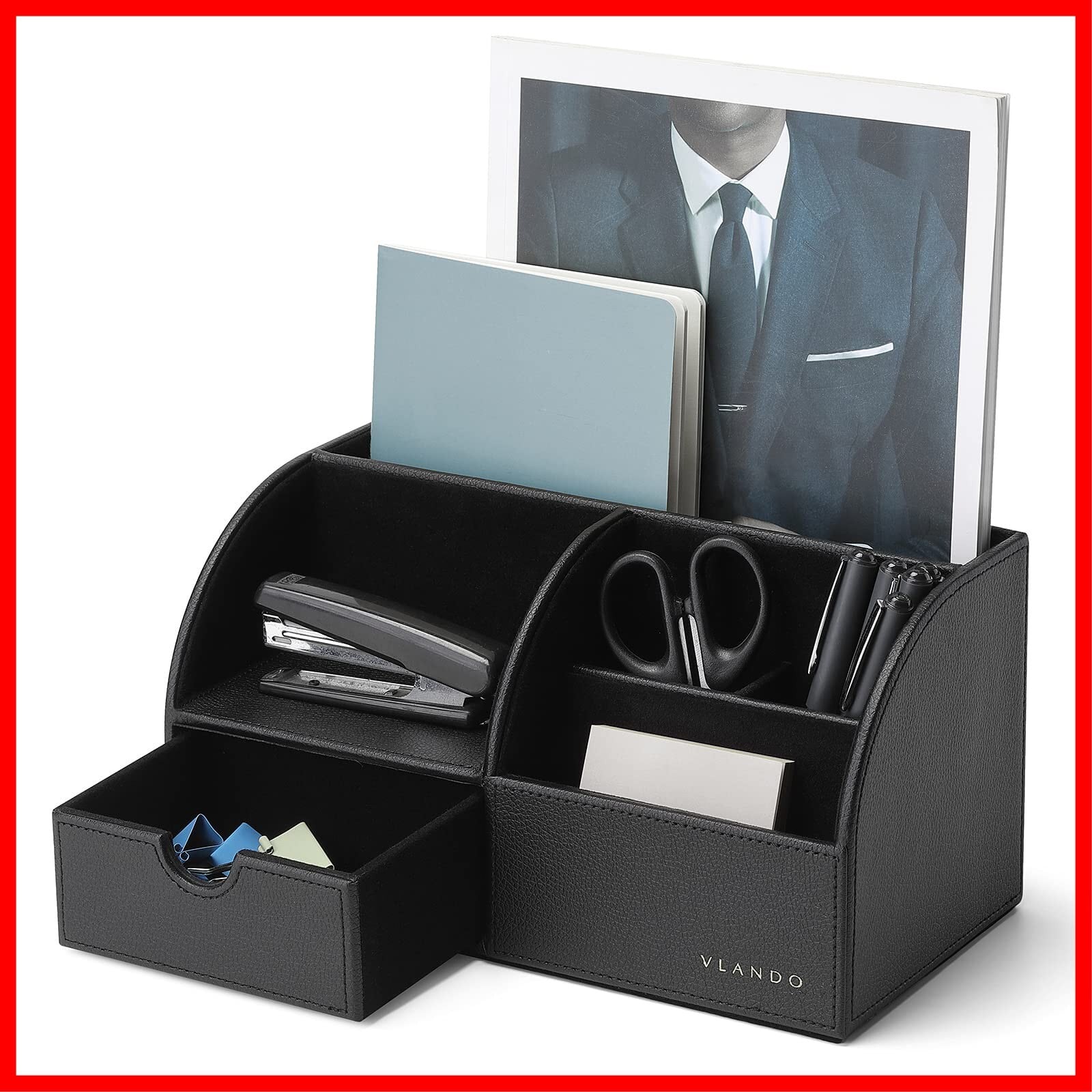 Vlando デスクオーガナイザー 卓上収納 ペン立て リモコンラック ペン立て 小物入れ (ブラック)