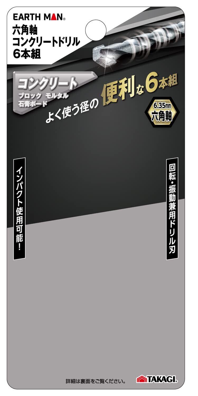 高儀(Takagi) EARTH MAN コンクリートドリル 六角軸 6本組 D-250