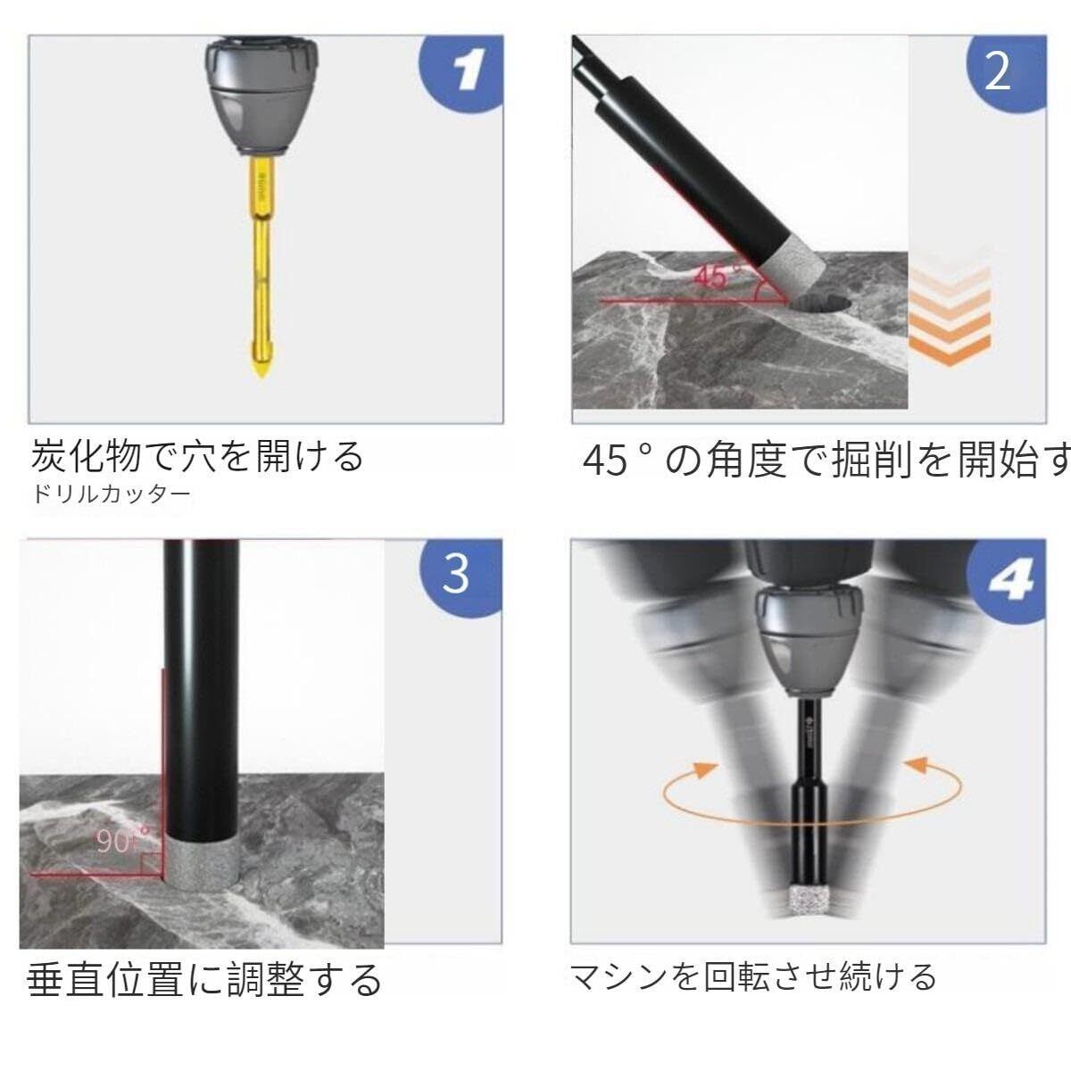 【穴あけサイズ】:5/6/8/10/12mm 素材を使用しています。6.35mm六角シャンク ダイヤモンド, 冷却ワックス付き.