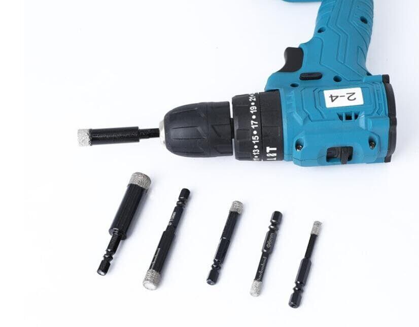 ダイヤモンドホールソー 六角軸 真空ろう付けされたダイヤモンド シャンクが付いている乾燥した穴あけ工具のセット 6本 5mm/6mm/8mm/10mm/12mm コアビット ガラス、セラミック大理石花崗岩タイル用ホールソー