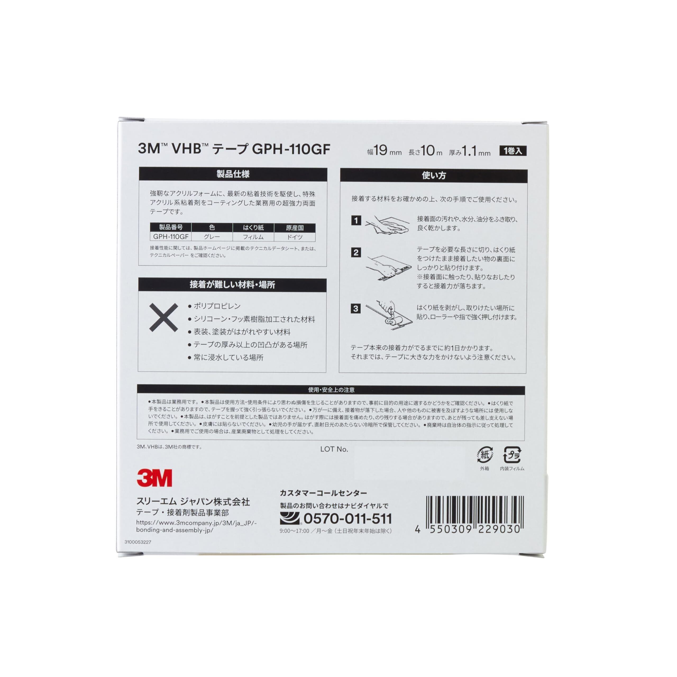 3M 屋内 屋外 高耐熱汎用 VHB テープ GPH-110GF, グレー, 19 mm x 10 m, 1.1 mm厚