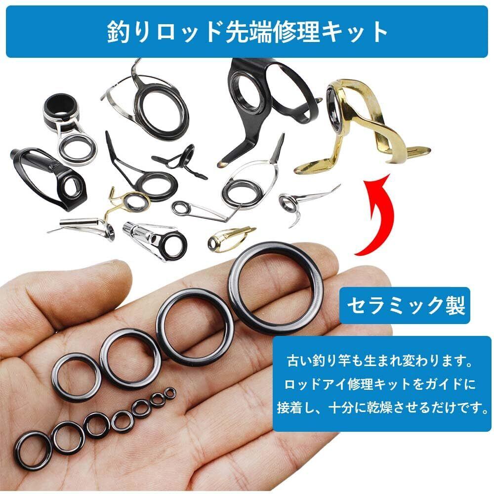 さまざまなモデルの製品が26個入りで、ブラックセラミックリング3〜30mm各2個を含んでおり、磯遠投竿、磯上物竿、振出、船小物、メバルなどルアーフィッシングのライトゲームなどに使われています。さまざまなリング径の要求を満たし、さまざまなタイプのロッドの修理が可能です。