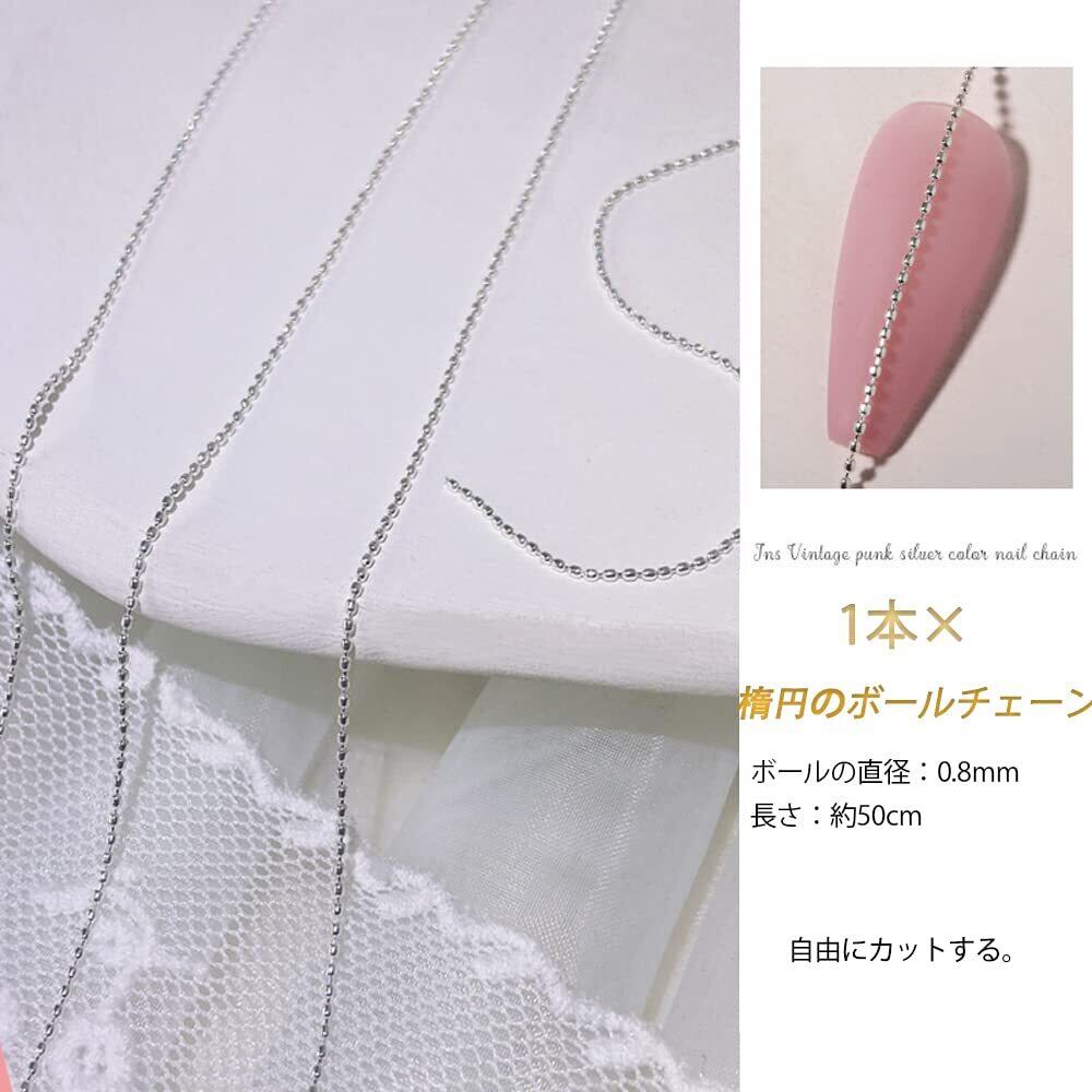 【セット内容】シルバーのボールネイルチェーン50cm×3本、合計約150cm。ネイルチェーンの直径:0.6mm、0.8mm、1mm。