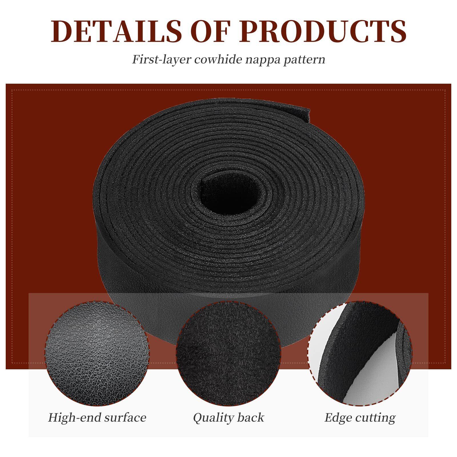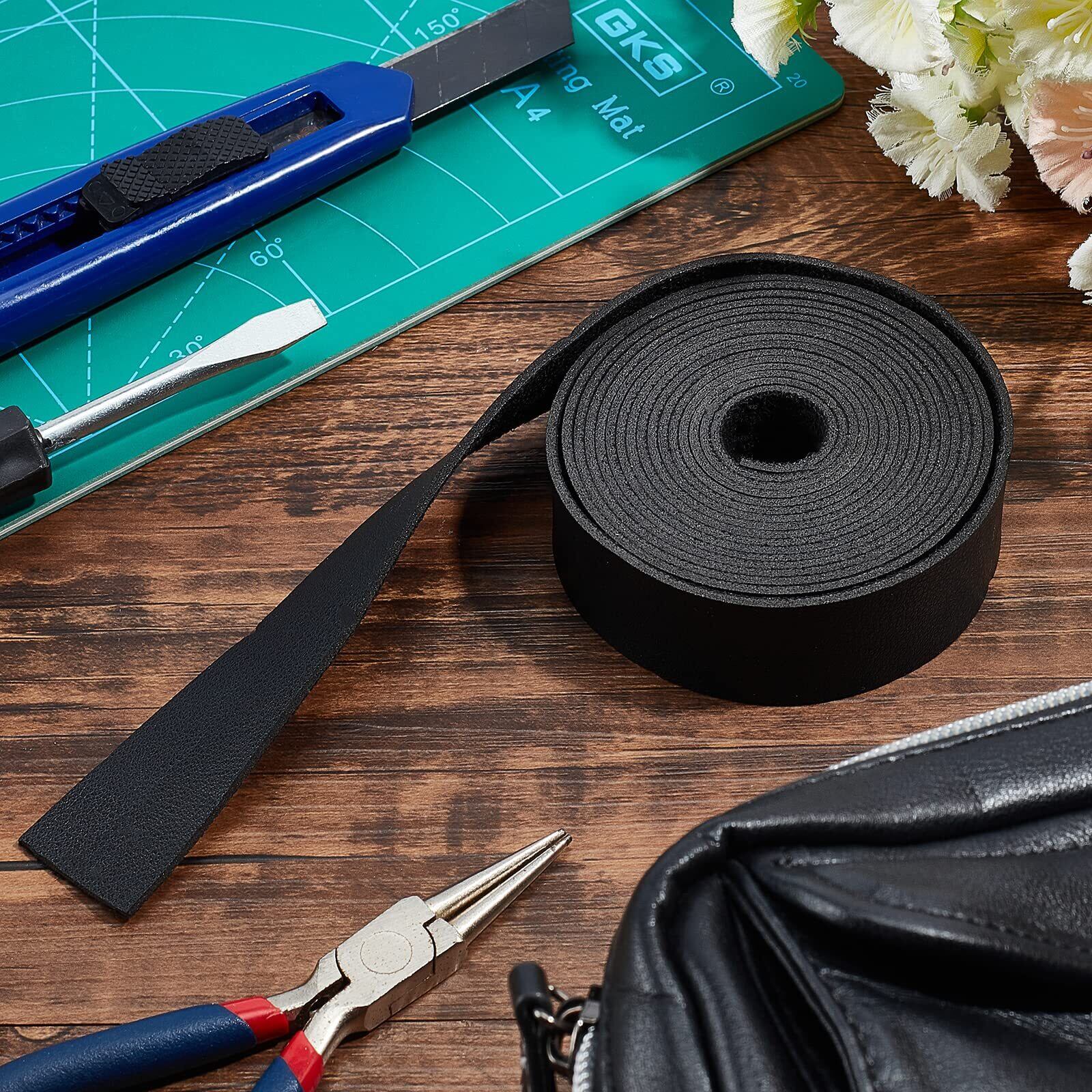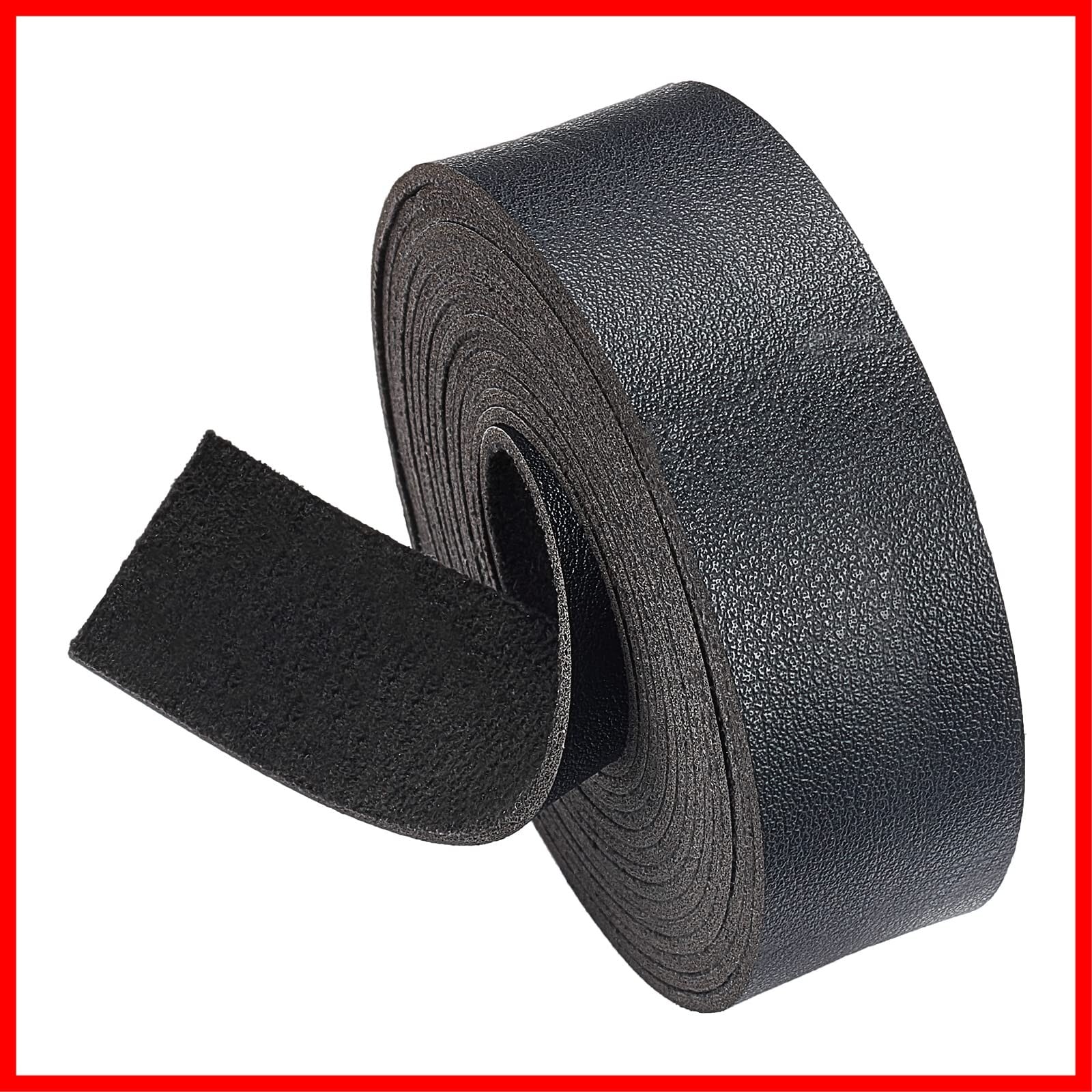 BENECREAT 2.5mx25mm レザーテープ ロール ライチ模様 片面レザー 合皮 生地 厚さ1.8mm 柔らかい バッグ 革小物作り 持ち手 テープ 張り替え フェイクレザー 手芸材料 (黒色) | hananoki