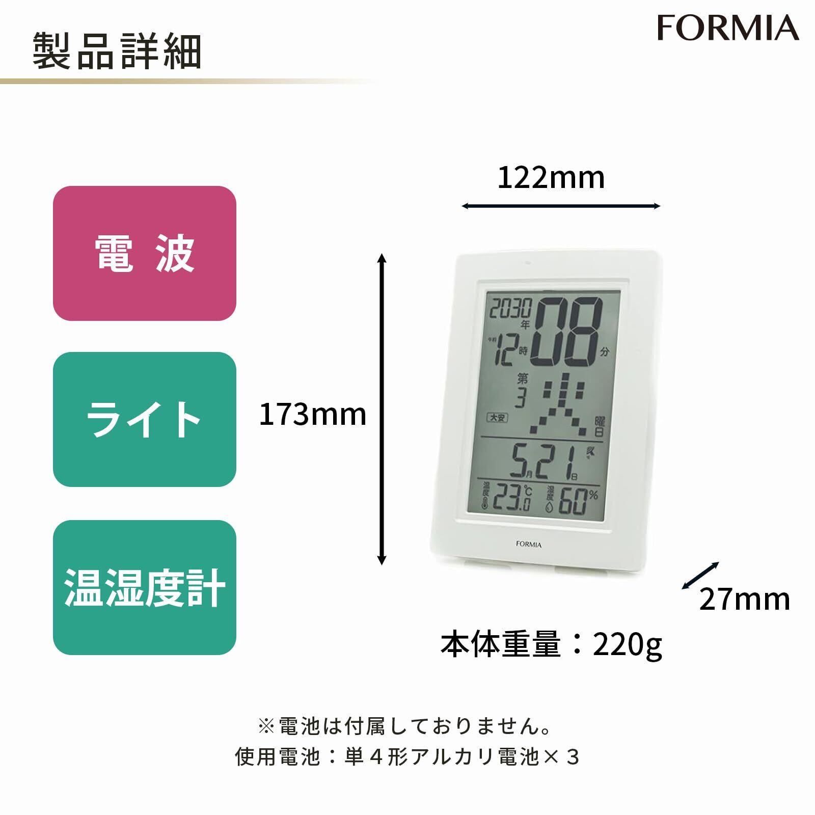 Formia(フォルミア) 電波時計 目覚まし時計 置き掛け兼用 見やすい 温度 湿度 日めくり カレンダー 小型 日付 曜日 六曜 電子音 スヌーズ デジタル 保土ヶ谷電子販売 ホワイト HT-040RC