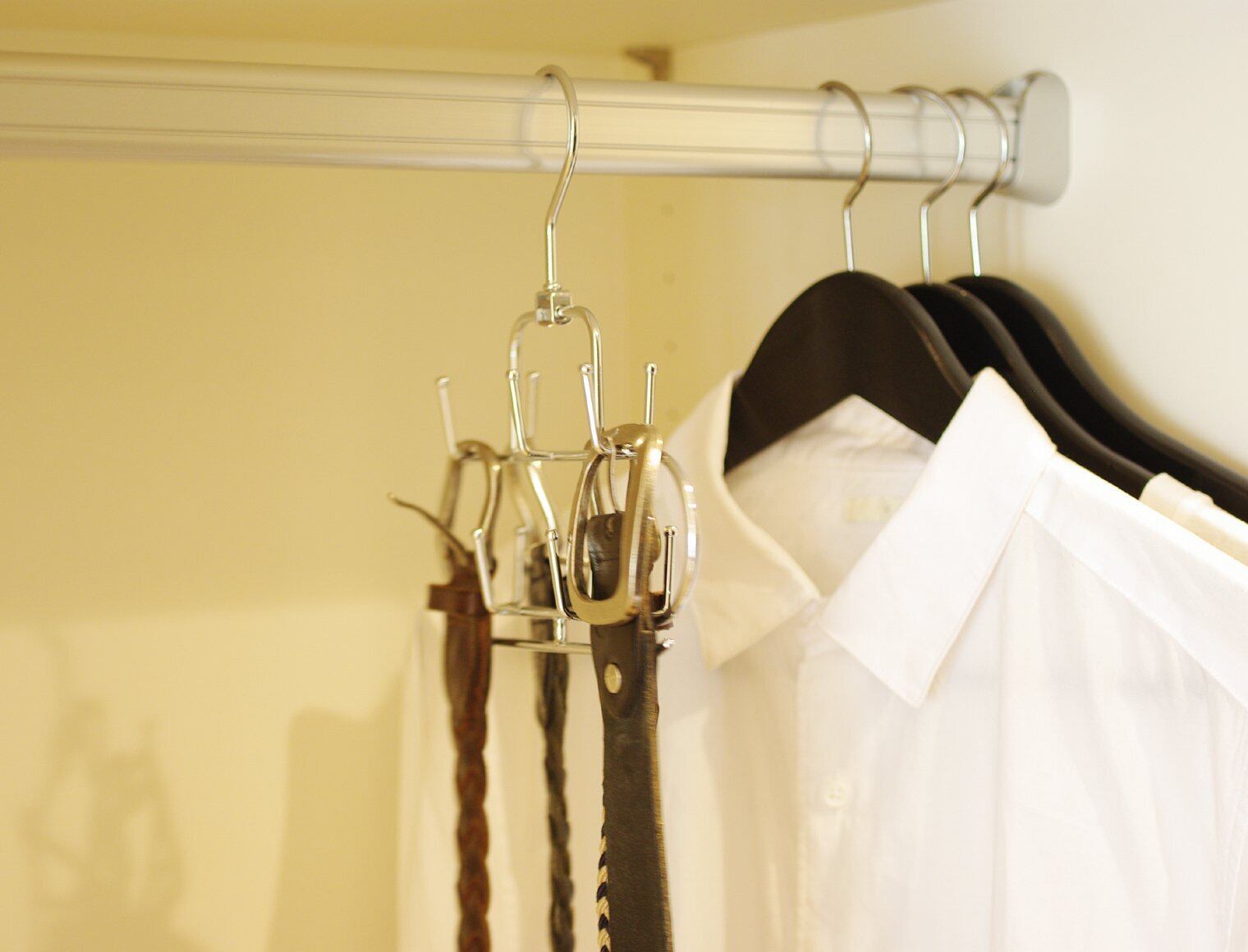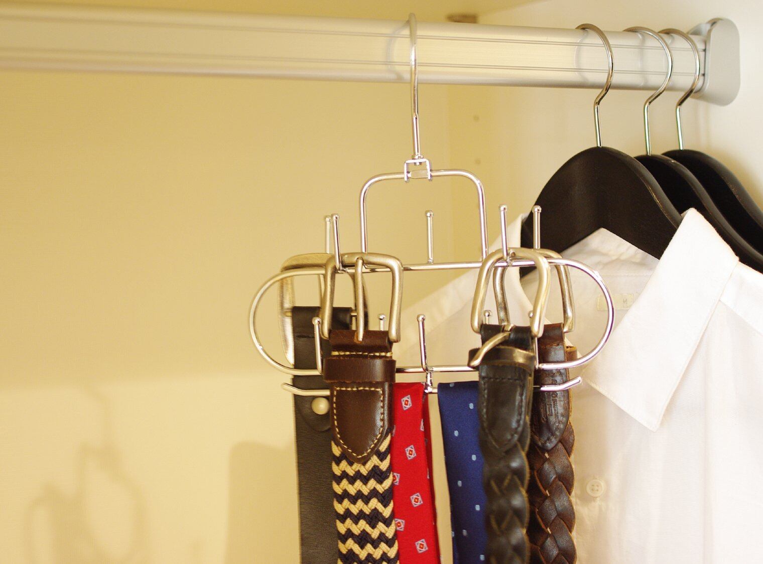 置き場所に困るベルトや小物を掛けてスッキリ収納。