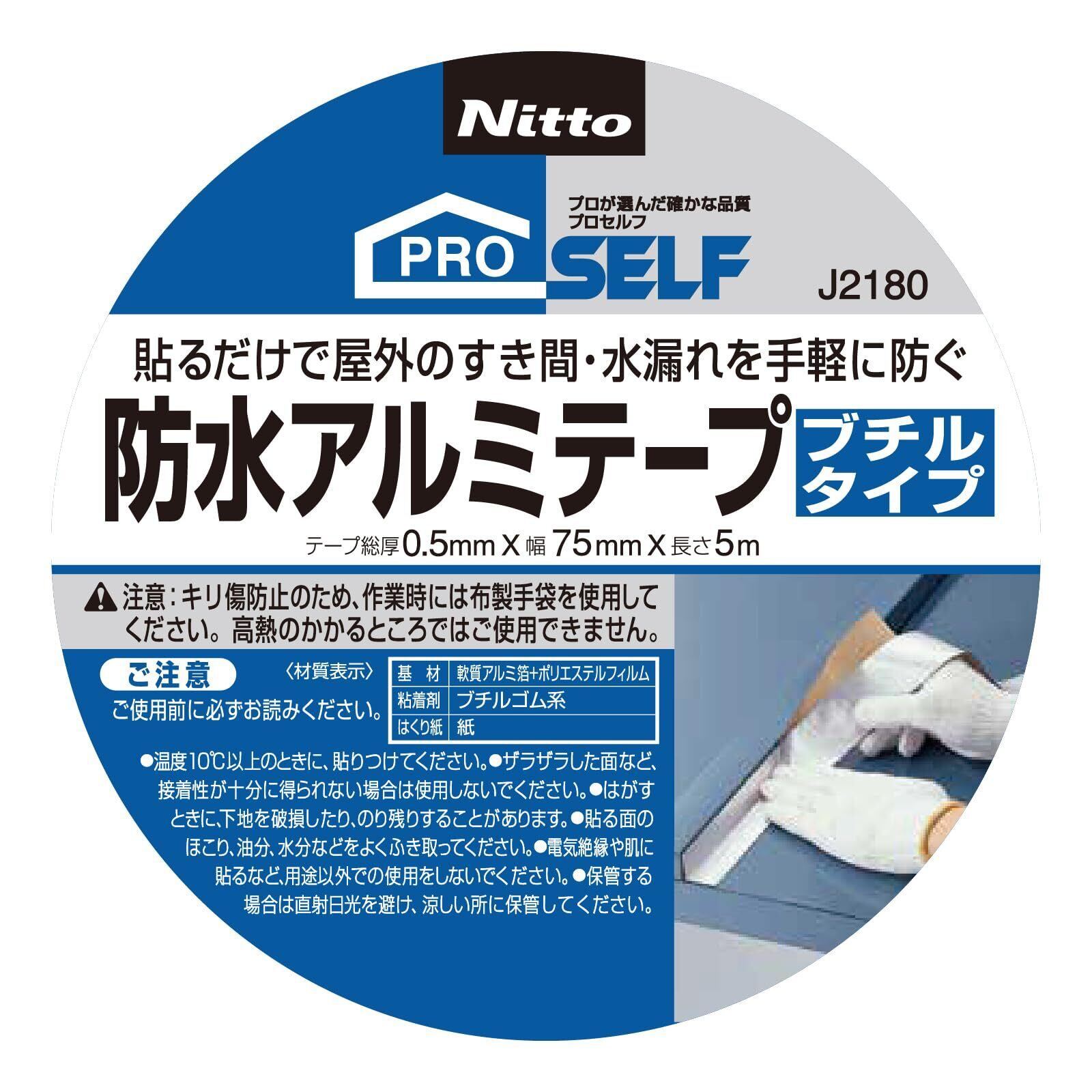 ニトムズ プロセルフ 防水アルミテープ ブチル トタン屋根 雨どい 修理 屋外 補修 耐久 幅75mm×長さ5m×厚さ0.5mm 1巻入 シルバー J2180