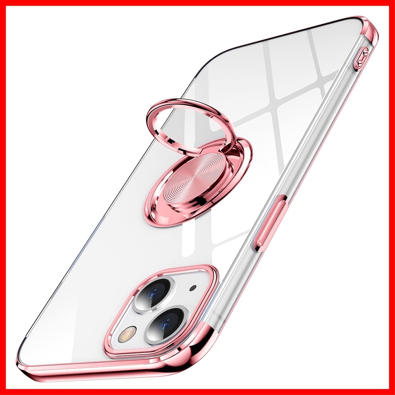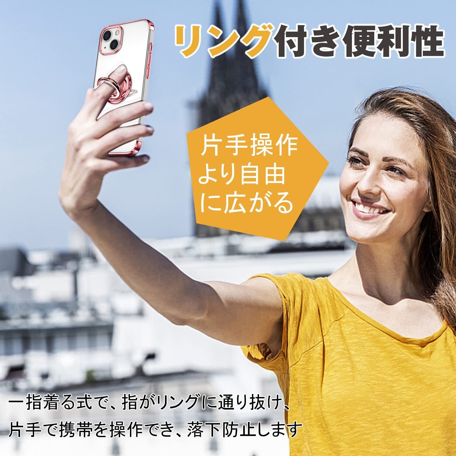 iPhone 14 用 ケース クリア リング付き アイホン 14 カバー 透明 おしゃれ OURJOY スマホケース メッキ加工 ソフトケース 耐衝撃 軽量 薄型 ストラップホール付き スタンド機能 車載ホルダー対応 携帯ケース • ローズゴールド | hananoki