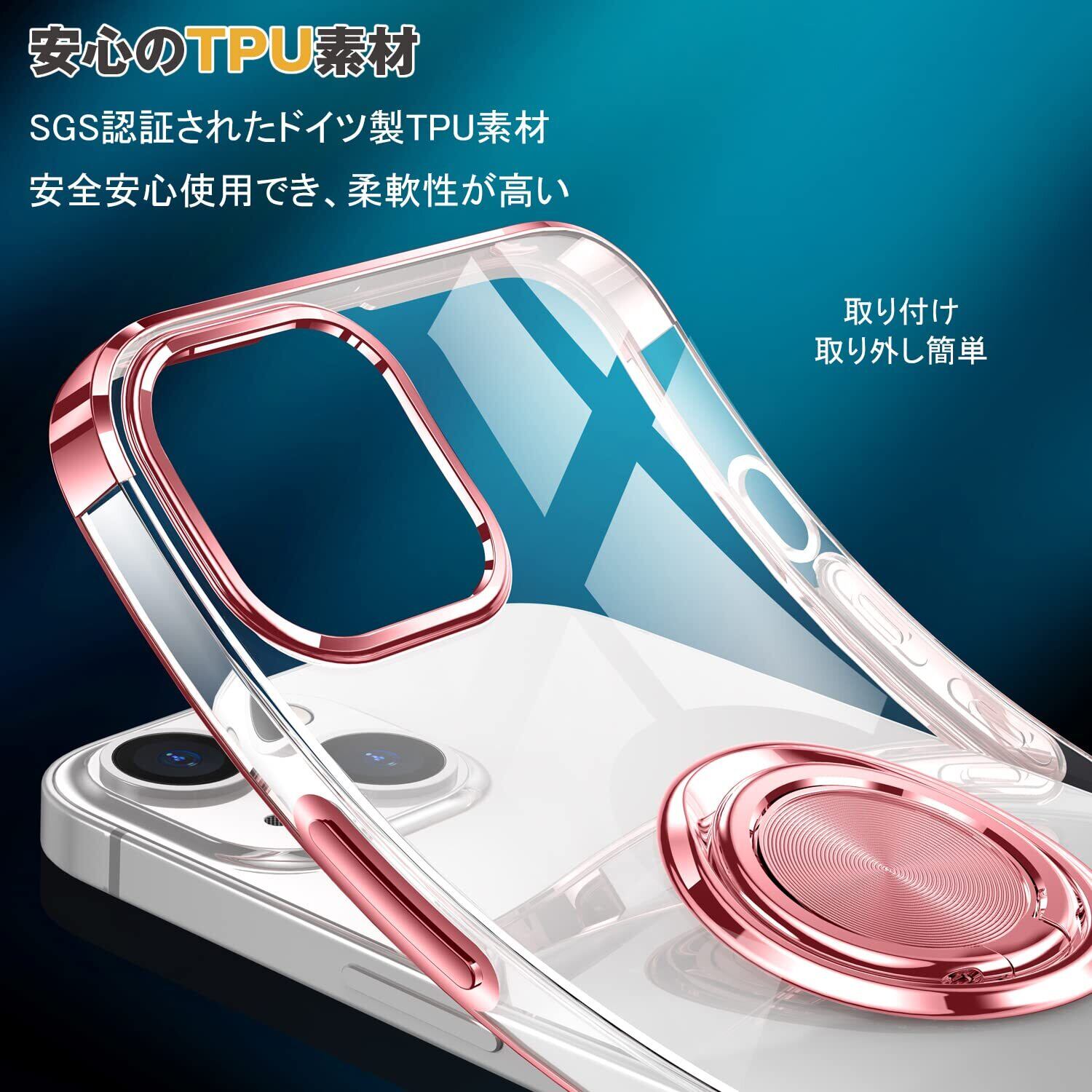 iPhone 14 用 ケース クリア リング付き アイホン 14 カバー 透明 おしゃれ OURJOY スマホケース メッキ加工 ソフトケース 耐衝撃 軽量 薄型 ストラップホール付き スタンド機能 車載ホルダー対応 携帯ケース • ローズゴールド