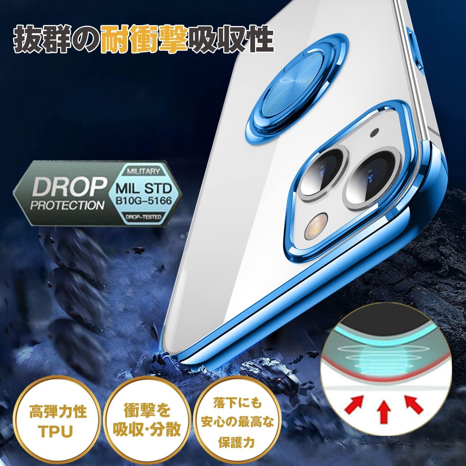 【リング付き機能】ケースを横置きにするとスタンド機能になり、持たず動画鑑賞などを楽しむことができます。リングは360度回転可能、180角度調節可能。一指着る式で、指がリングに通り抜け、片手で携帯を操作でき、落下防止します。