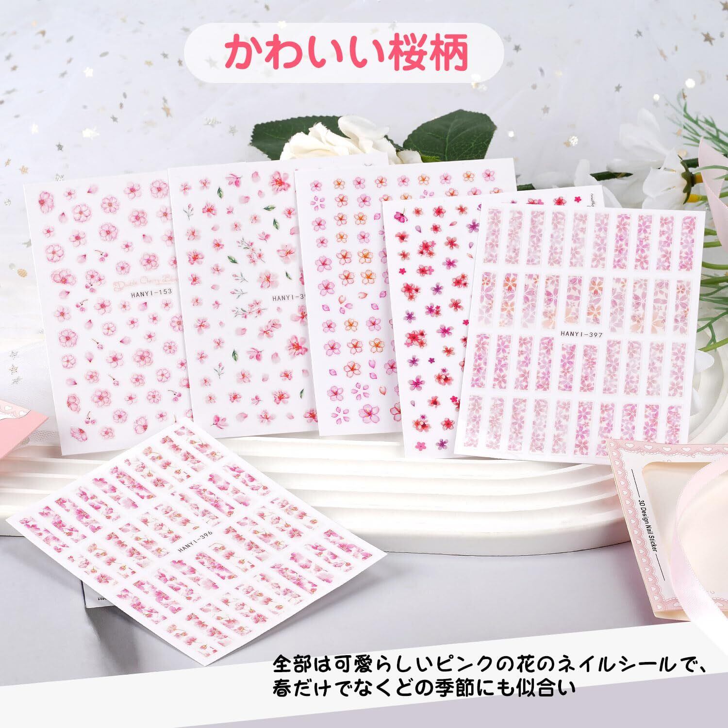 【適用範囲】春のお花見にぴったりです。ネイルに使わなくても、デコレーション用のシールとして使っても可愛いし、他のものの表面に飾ることもできます