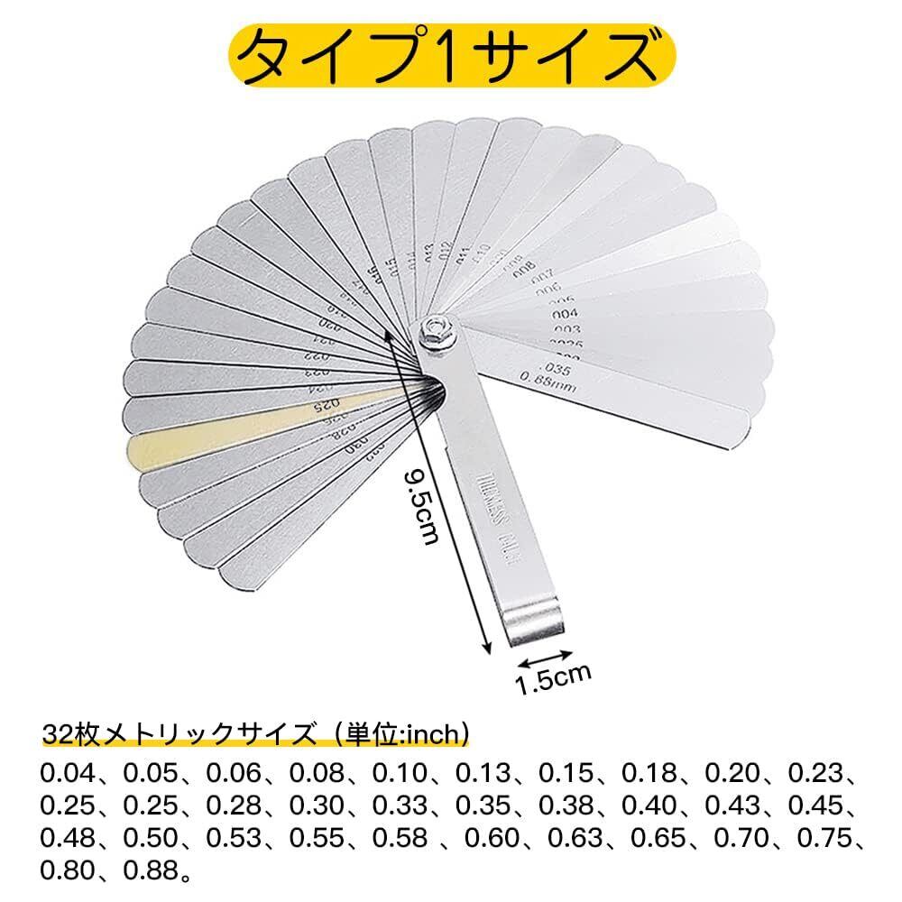 シックネスゲージ 隙間ゲージ 32枚組+16枚組 ステンレス鋼 薄さ測定 すきまゲージ 角度付き 測りフィーラーゲージ スクリューピッチゲージ 隙間測定 弦間調整に ナット 厚さゲージ 測定ツール (2個セット)