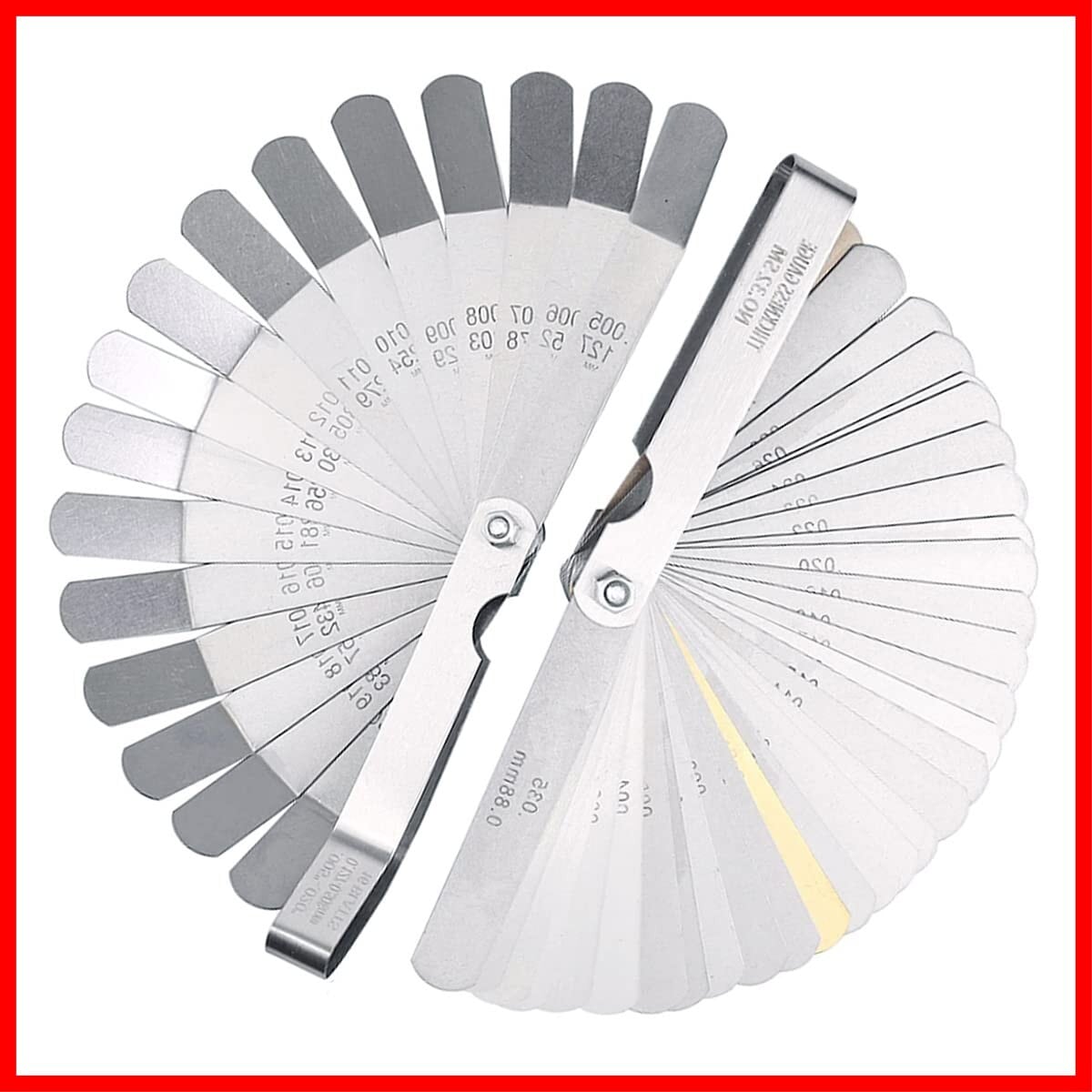 32枚メトリックサイズ(単位:inch):0.04、0.05、0.06、0.08、0.10、0.13、0.15、0.18、0.20、0.23、0.25、0.25、0.28、0.30、0.33、0.35、0.38、0.40、0.43、0.45、0.48、0.50、0.53、0.55、0.58 、0.60、0.63、0.65、0.70、0.75、0.80、0.88。