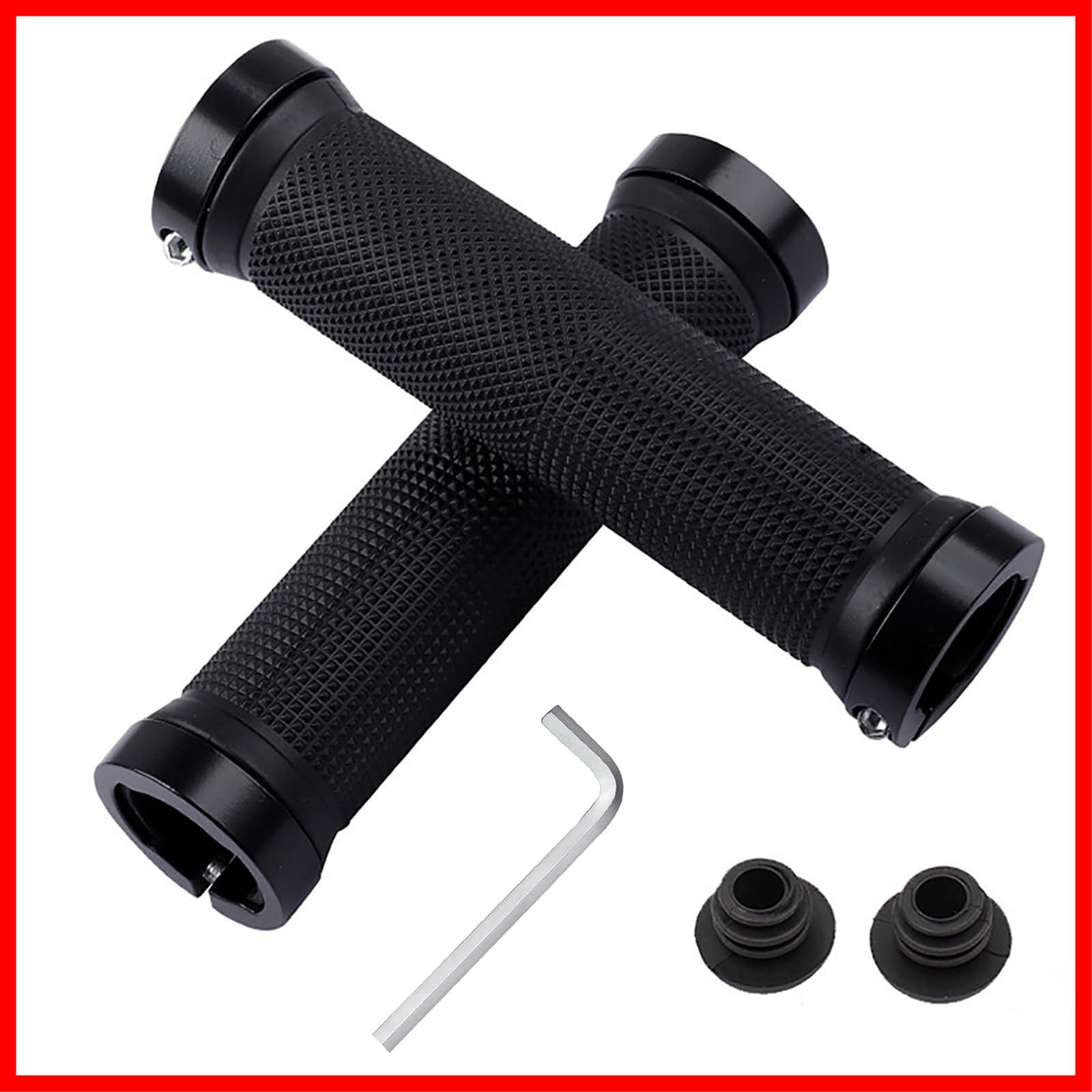 自転車 グリップ 滑り止めゴム製 ハンドルグリップ 内径22mm 左右セット 六角レンチ付き 疲労軽減 滑り止め 握りやすい MTB BMX マウンテンバイク 折りたたみ式自転車 クロスバイク 汎用 (ブラック)