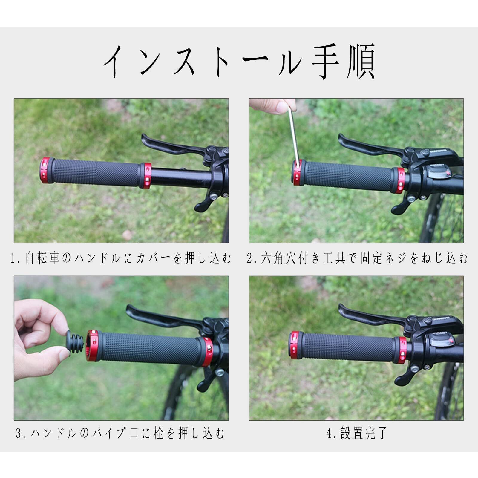 【取り付け簡単】自転車のハンドルに取り付け、ハンドル端のボルトを付属の六角レンチで締め付ける。ボルト固定タイプなので、女性でも簡単に交換できます。