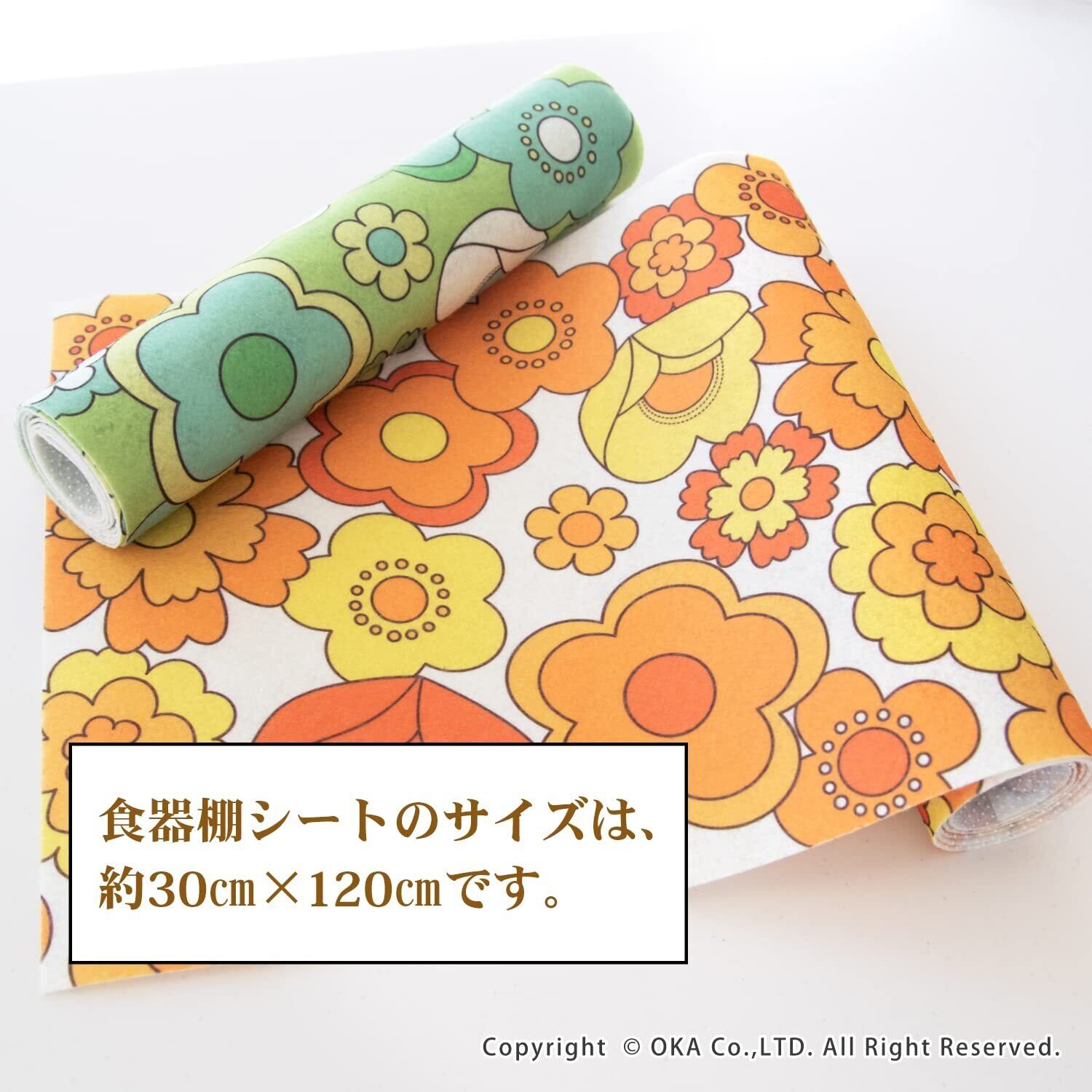 オカ(OKA) 食器棚シート ルアンス 約30cm×120cm グリーン (保護 収納 レトロ 昭和 花柄)