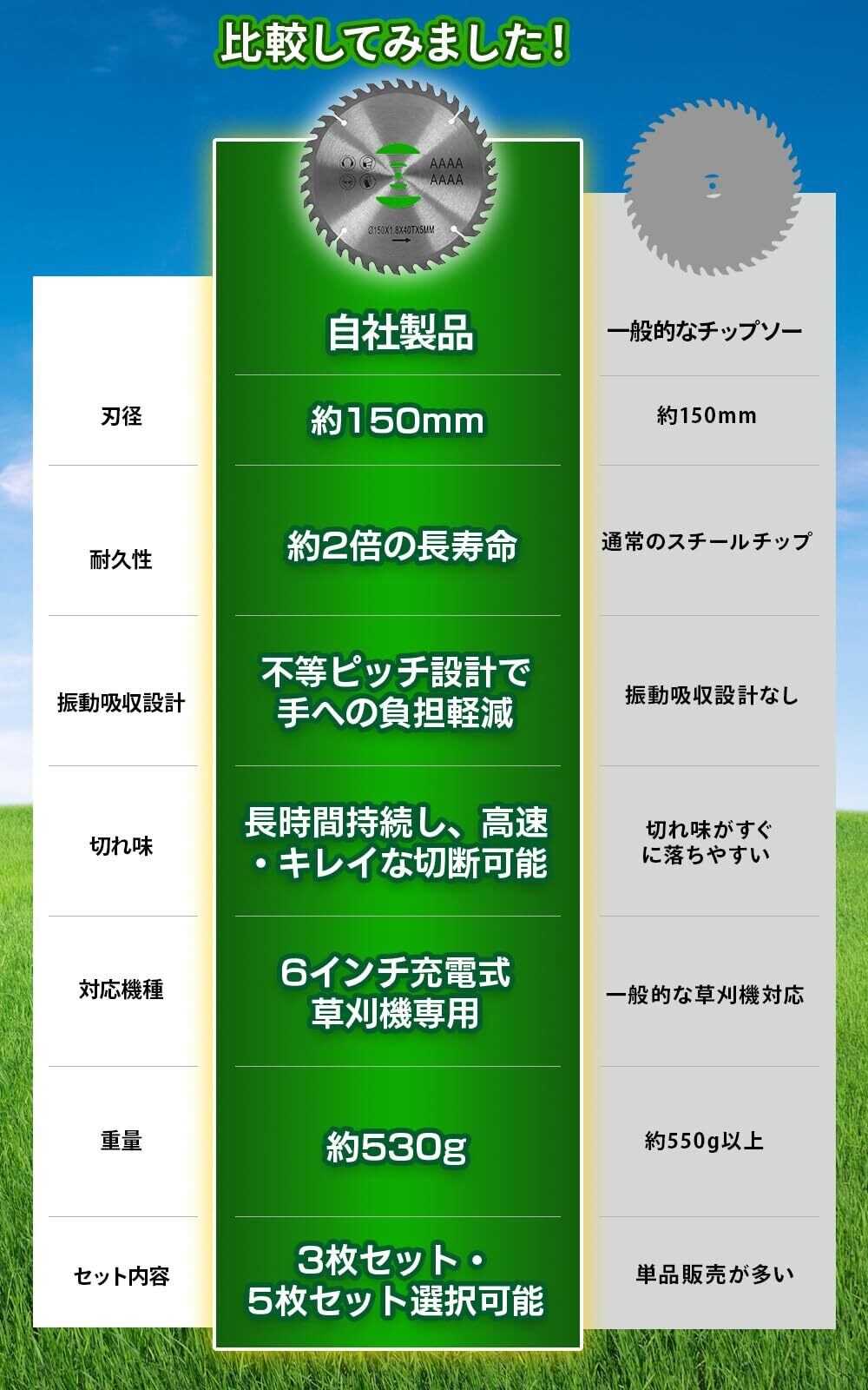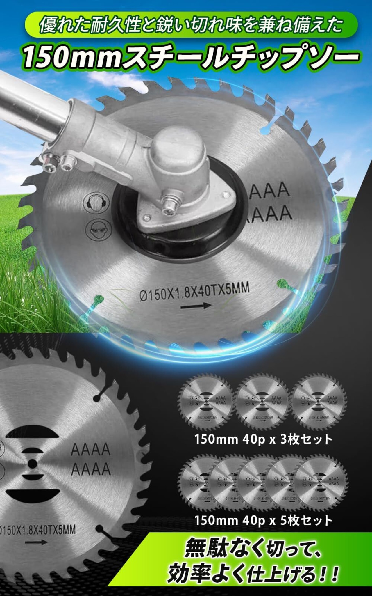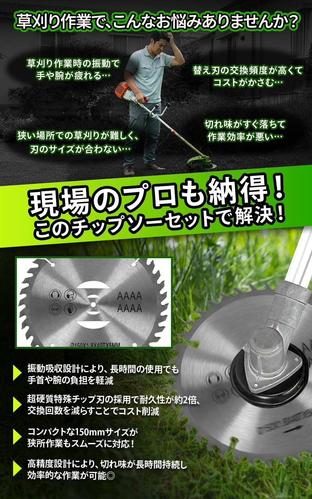 【精密設計と耐久性が融合した、極上の150mmスチールチップソー。充実の3枚、5枚セットで、快適な作業環境をお届けします】高品質スチール製150mmの草刈りチップソー3枚・5枚セット。コンパクトかつ耐久性に優れ、振動吸収技術と超硬質特殊チップで快適かつ効率的な作業を実現します。