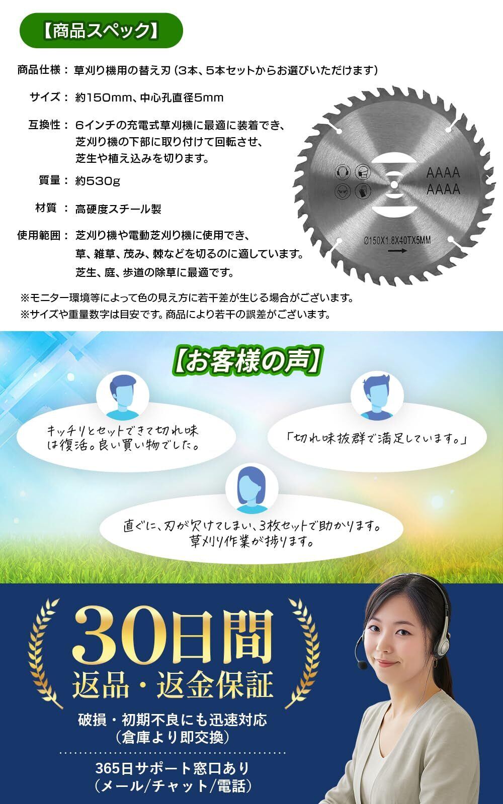 【充電式草刈機に最適】6インチの充電式草刈機に最適な商品。草刈機のパフォーマンスを最大限に引き出し、効率的で迅速な作業をサポートします。