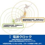 電波修正機能(40kHz/60kHz自動選局・受信OFF機能つき)、2099年までのフルオートカレンダー機能、電子音アラーム(ダンダントーン)、スヌーズ