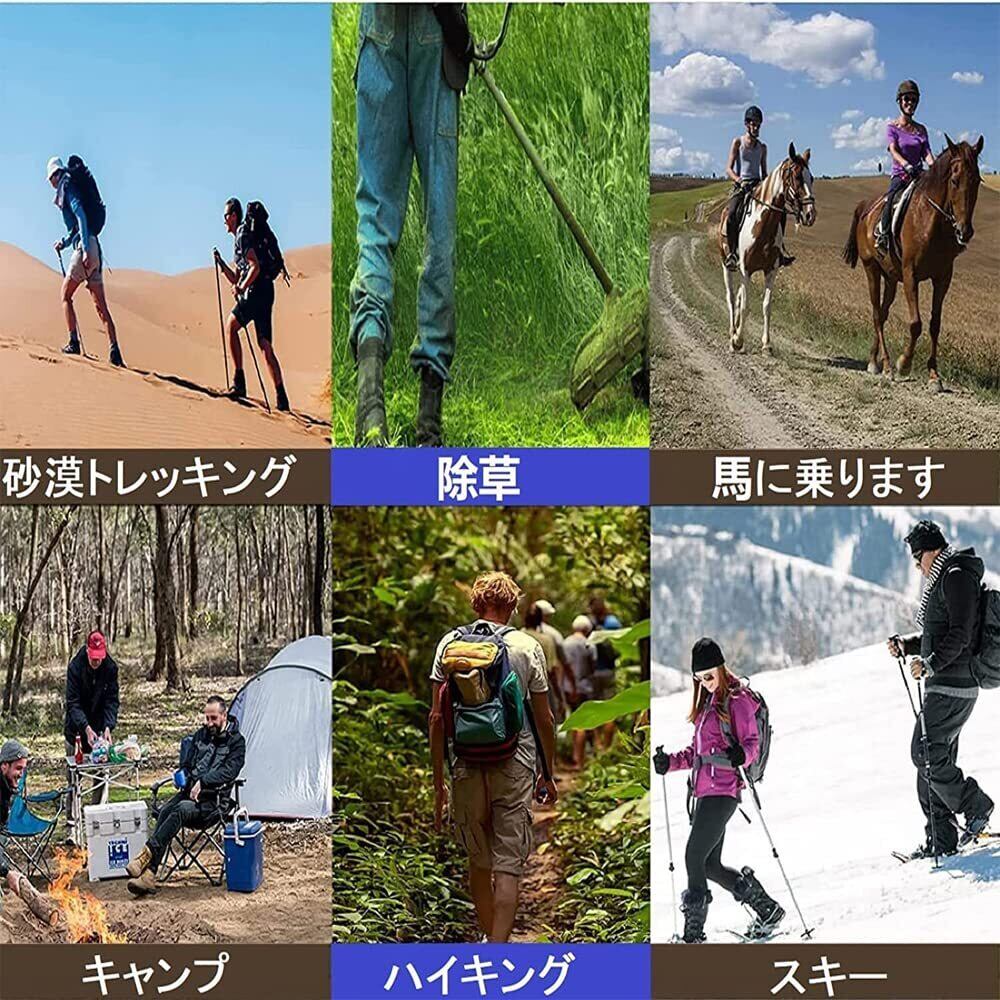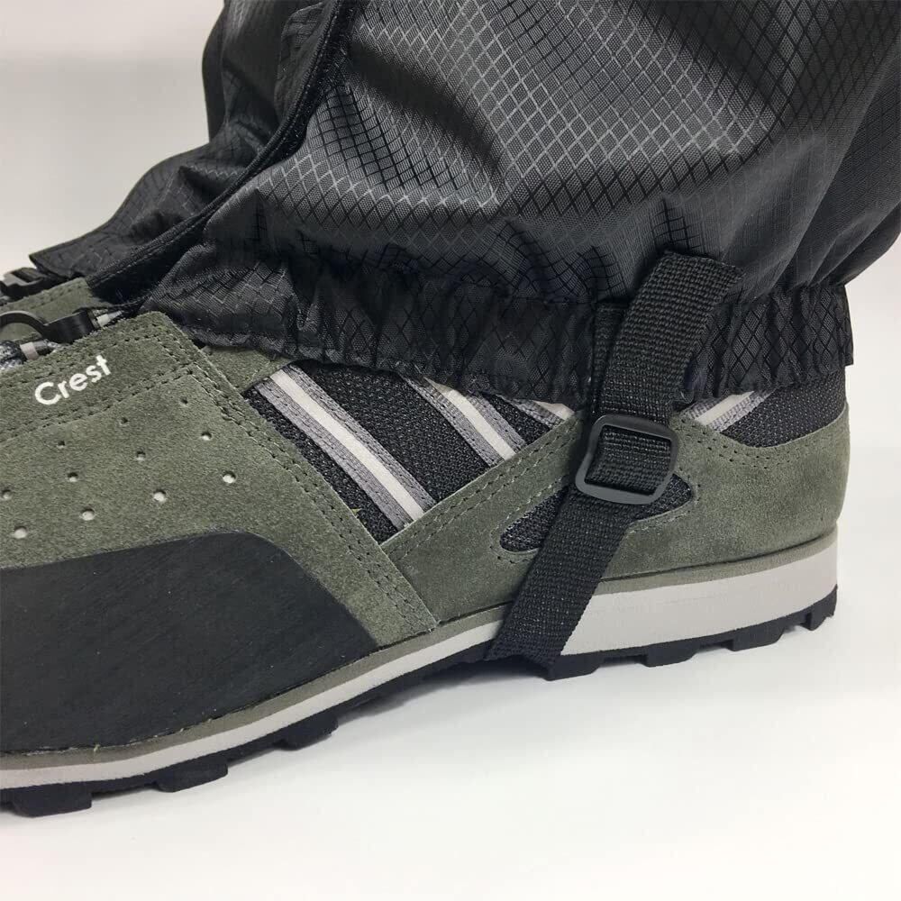 【工芸と様式】: 登山スパッツは膝下から足首までをカバーして、露、雪や雨、泥跳ねからガードします。晴れた日でも砂や小石などが靴の中へ入るのを防ぎます。簡単に着脱できます。