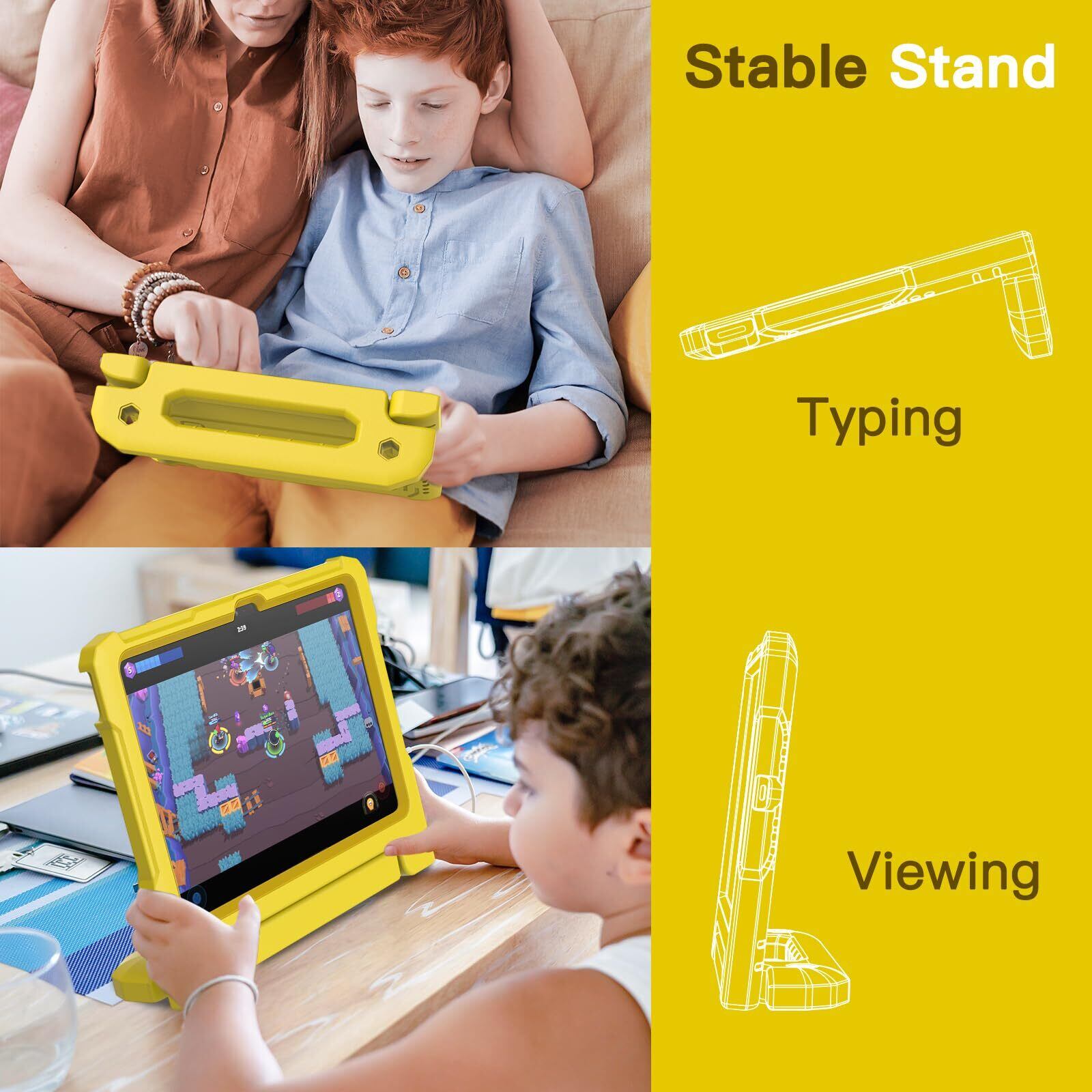 [多目的スタンド] 滑り止めの風合いで子供に優しいハンドルのデザインです。持ち�びやすいし、両手を解放して自由に視聴を体験するあるいは快適なタイピングのために折りたたんで、頑丈なスタンドに変えるのも易しいことです