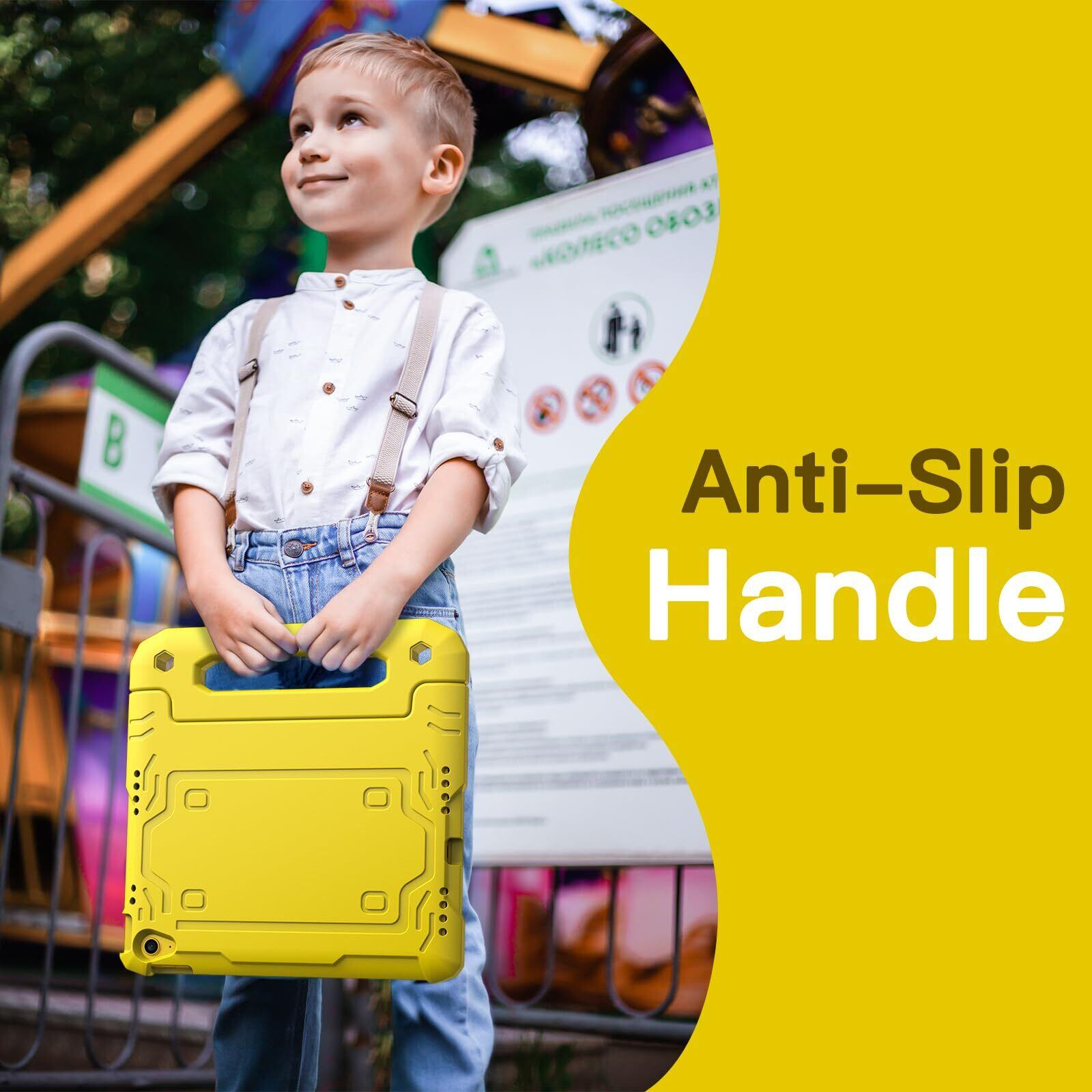 JEDirect 子供用 iPad(A16)ケース 第11/10世代(2025/2022モデル)用液晶保護フィルム付き 耐衝撃 フルボディハンドルスタンド タブレット保護カバー (イエロー)