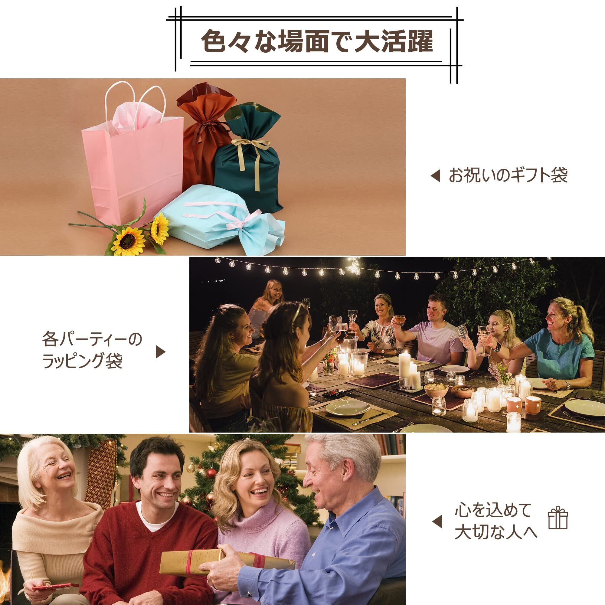【幅広い用途】誕生日、クリスマス、母の日、父の日、記念日などの大切な日にこのラッピング袋を飾って、心を込めて祝福を伝えます。結婚式、卒業式、送別会、職場異動の際などの重要な場面にラッピング袋と紙袋を組み合わせて、役に立ちます。