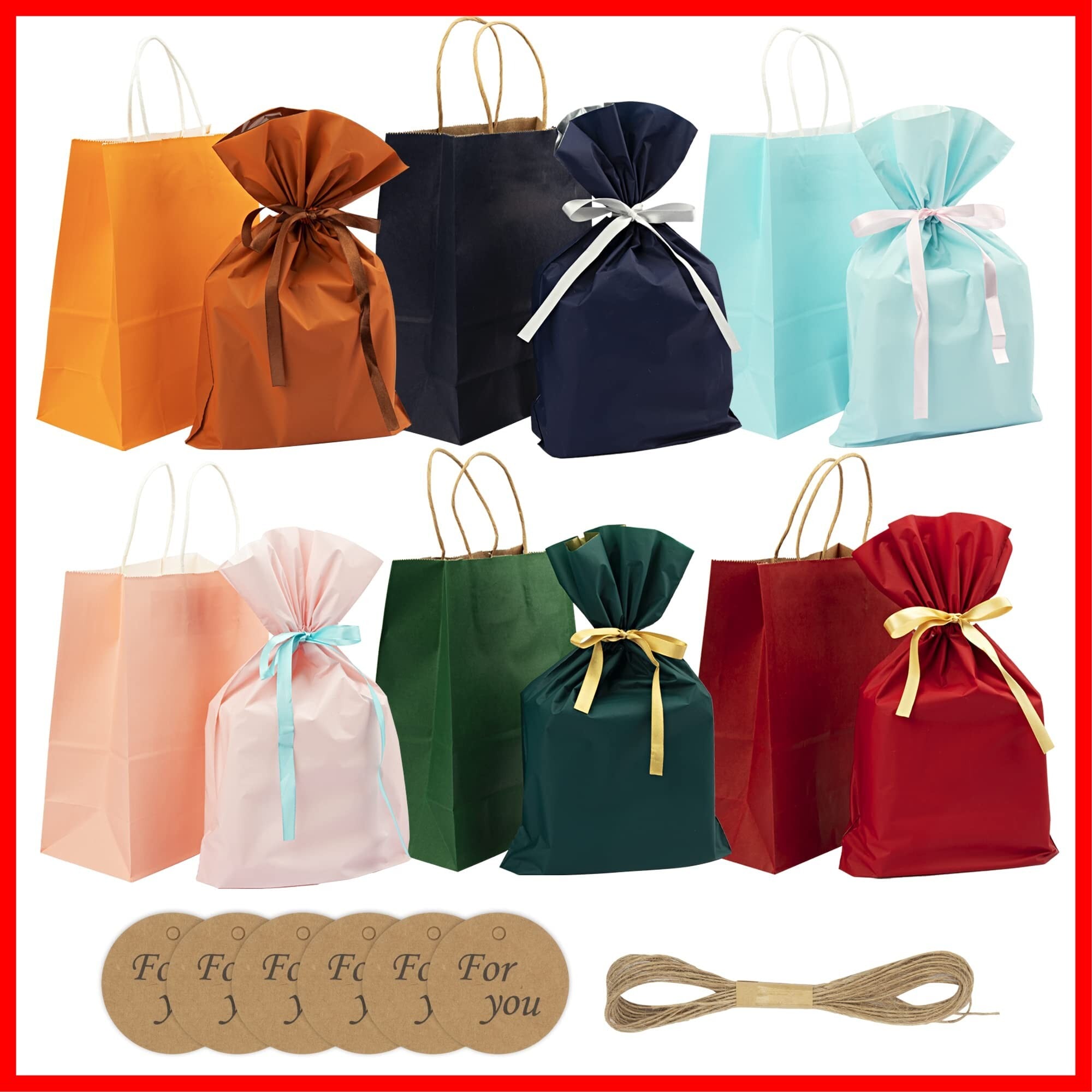[TEMLUM] ラッピング袋 ギフトバッグ 包む リボン付き 紙袋 手提げ袋 プレゼント用 6色 ギフト 包装 無地 厚手 おしゃれ リサイクル可能 クリスマス 誕生日 結婚式 収納 (セット01) | hananoki
