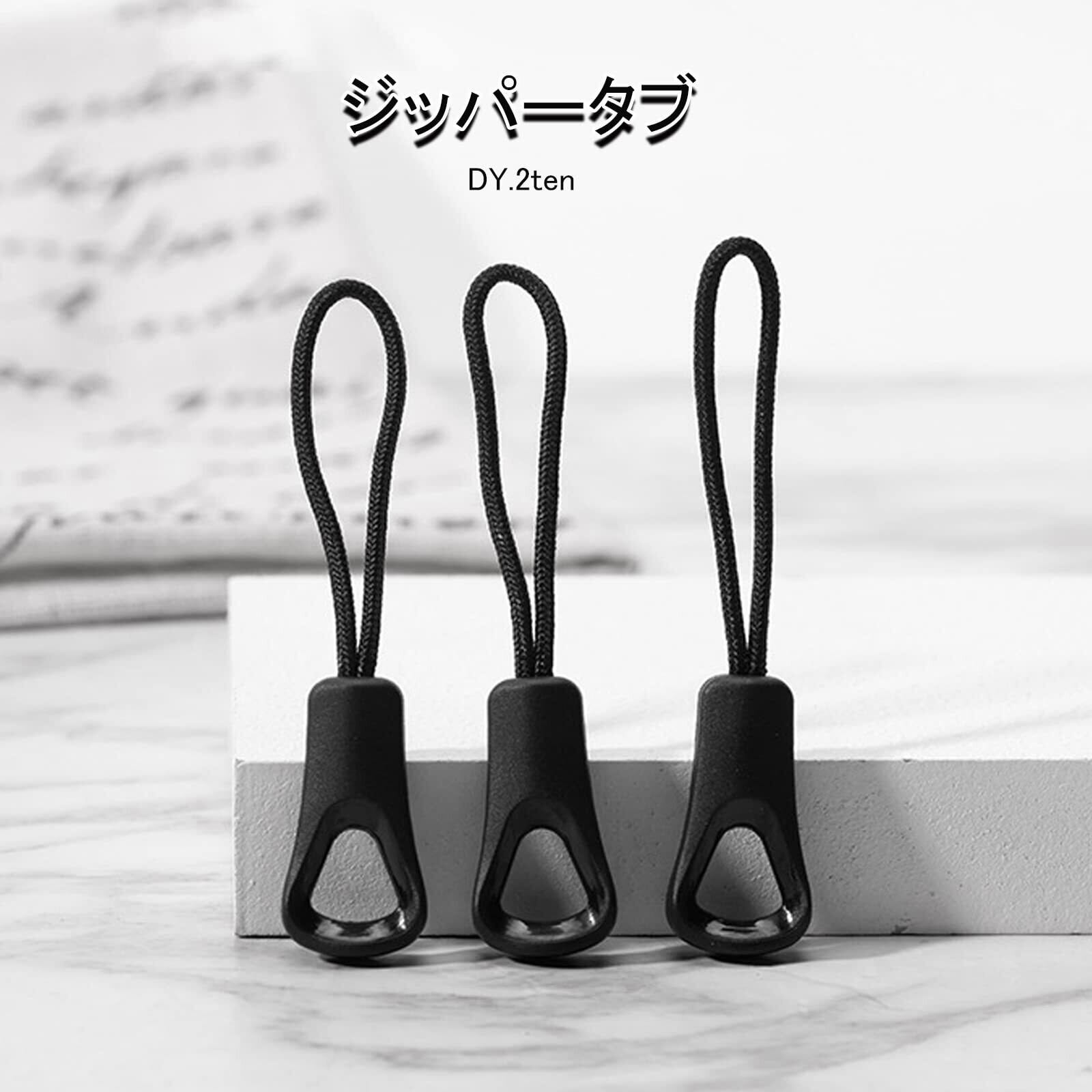 DY.2ten ジッパープル 10個セット ジッパータブ ファスナー 引き手 交換用ジッパープル 開閉 楽々 引きやすい 大きめザック バックパック/衣類/テント/寝袋用 取付簡単 実用的ファスナーパーツ 黒