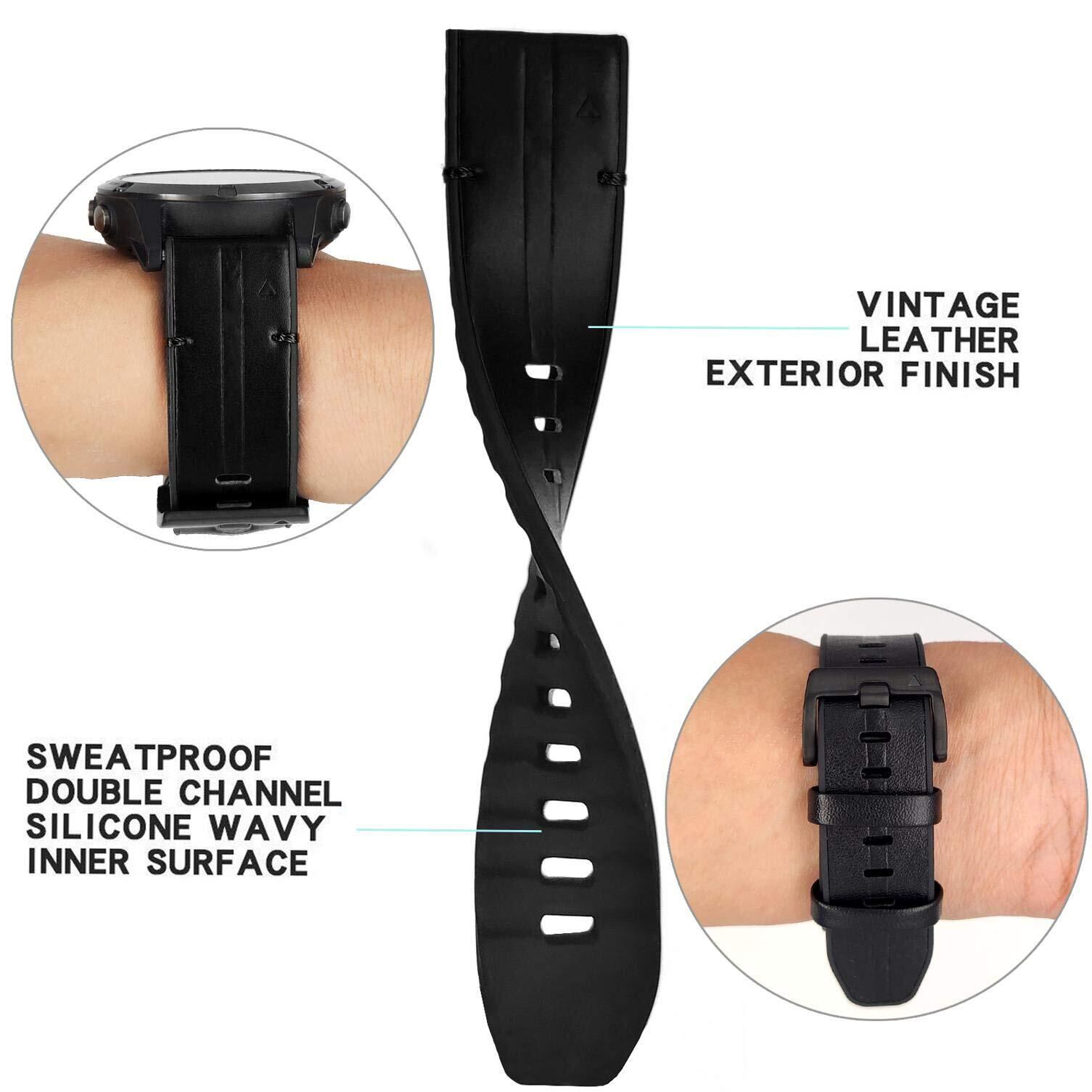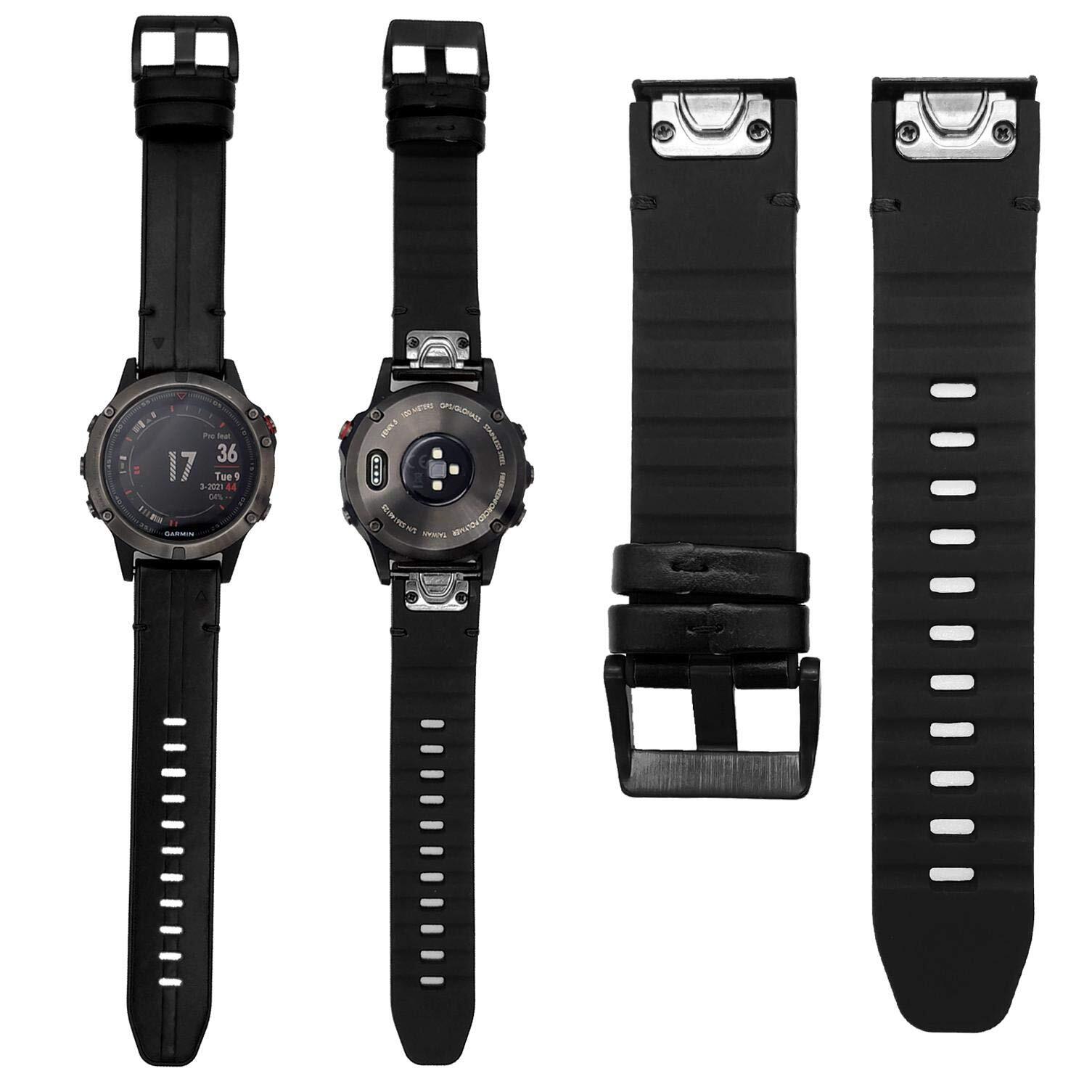 Ahayo QuickFit 22mm 交換本革 バンド に適合するガーミンFenix 8 47mm / Fenix 7/ epix Pro 47mm/ Fenix 6 / Fenix 5 / Approach S62,シリコンハイブリッドデザインの通気性ストラップベルト用の Garmin Approach S70 47mm(フルブラック)