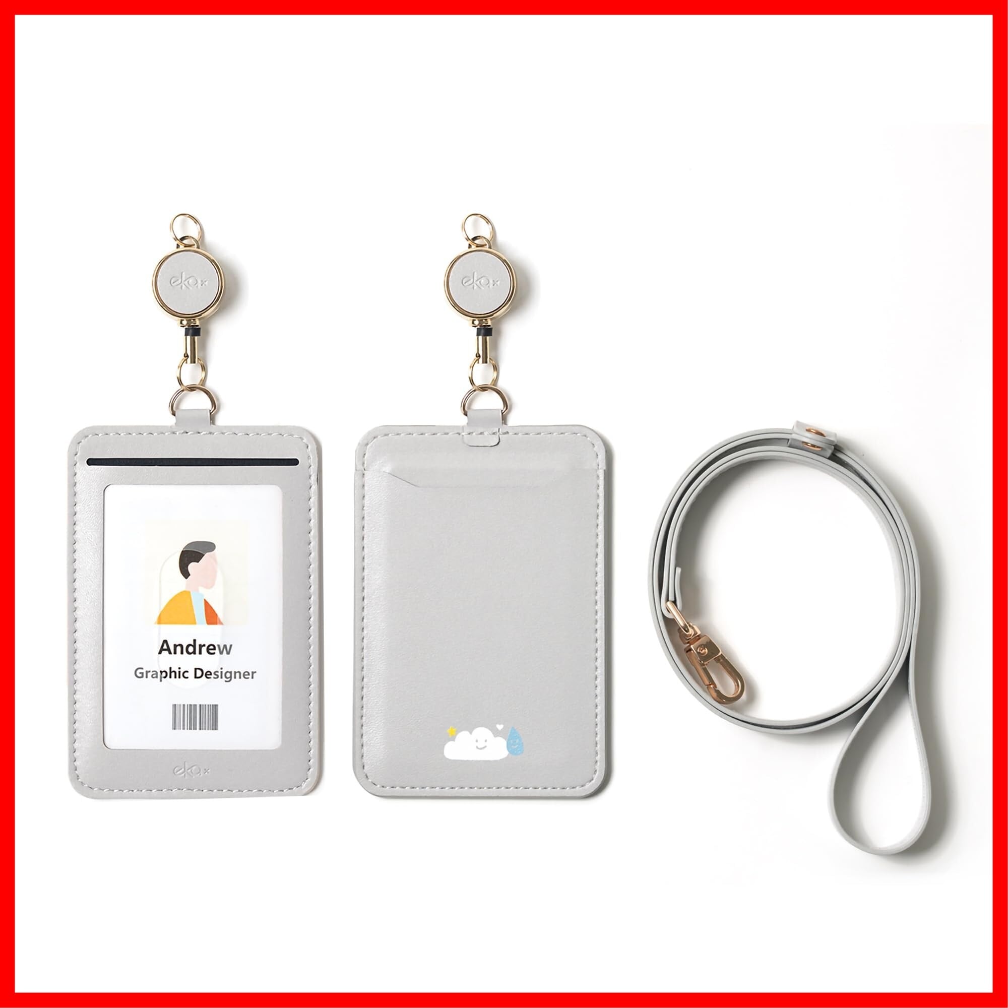 ekax IDカードホルダー ネームホルダー 縦型 干渉防止 ネックストラップ 伸縮リール式 2枚収納 長さ調節可能 社員証 定期入れ カード入れ 両面反応タイプ 干渉エラー防止 パスケース(曇-グレー) | hananoki