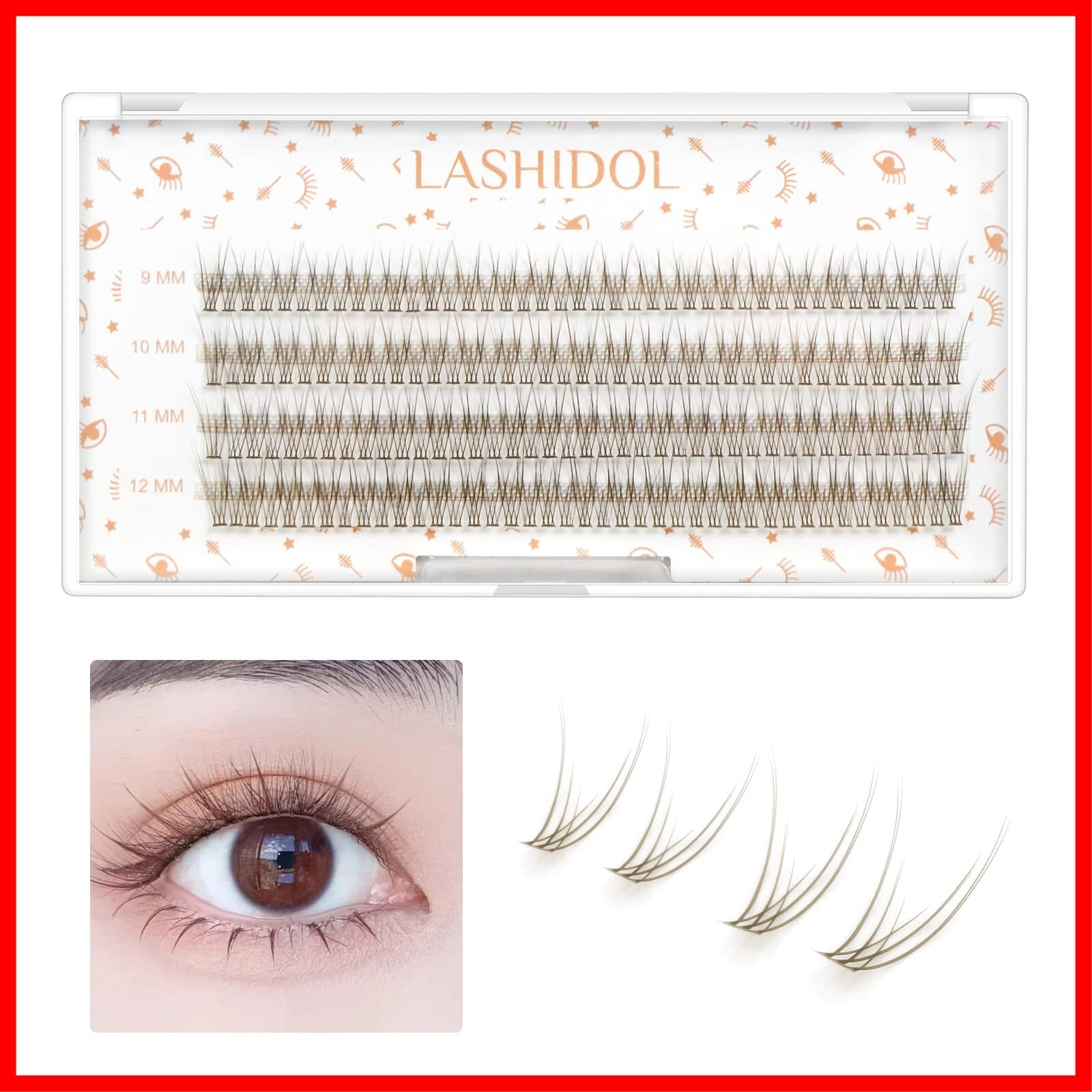 LASHIDOL 部分つけまつげ マツエク セルフ つけまつげ ナチュラル 人気 DIY つけまつ毛 簡単 9~12 mm(桜) (フィッシュテールまつげ, ブラウン)