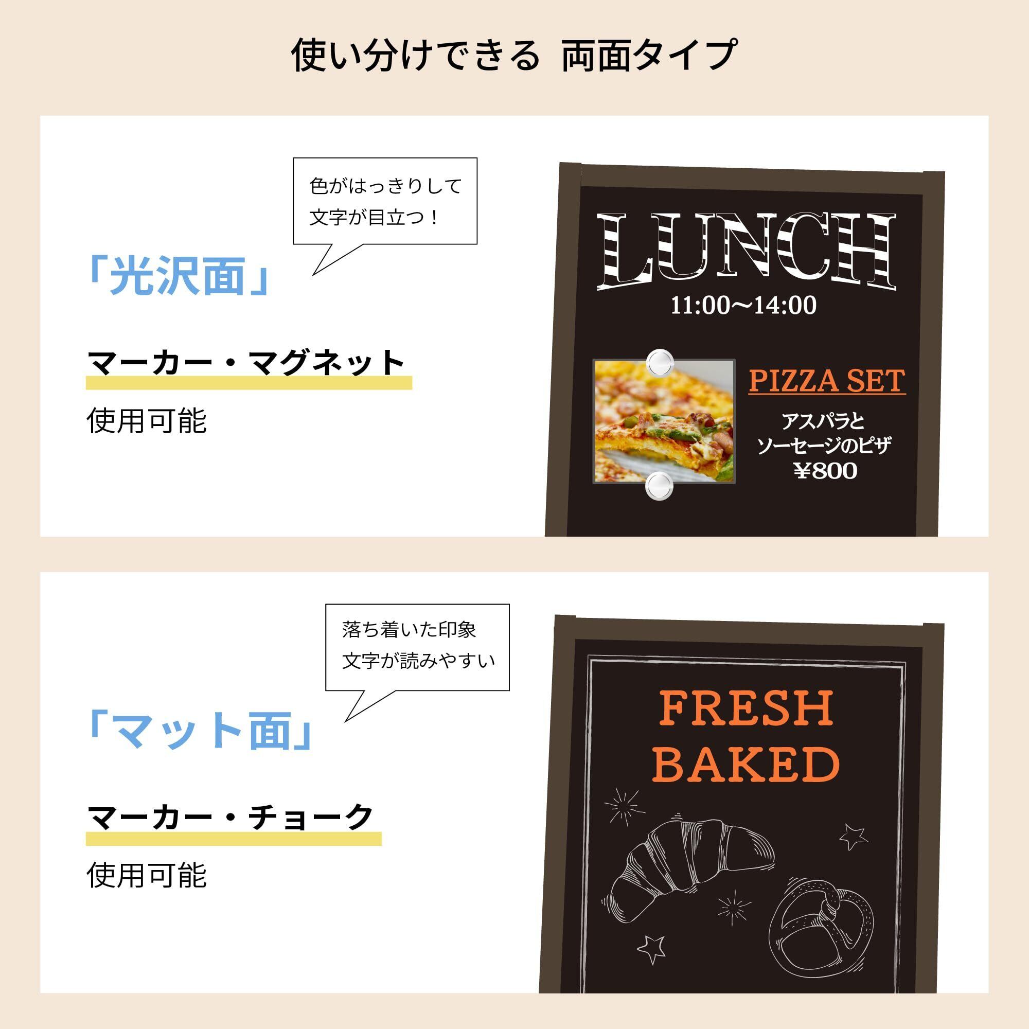 光沢面:マーカー&マグネット可、マット面:チョーク&マーカー可